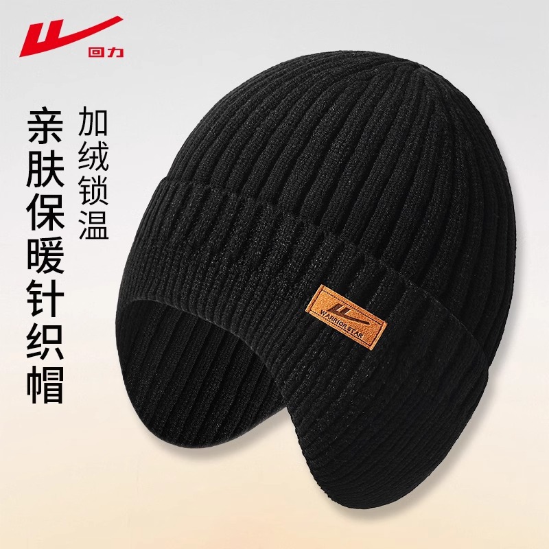 回力男士毛线帽子冬季新款防风护耳骑行加厚保暖好搭防寒针织帽子