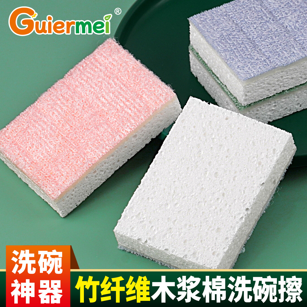 新款竹纤维木浆棉洗碗擦家用清洁双面海绵百洁布厨房去污刷碗神器