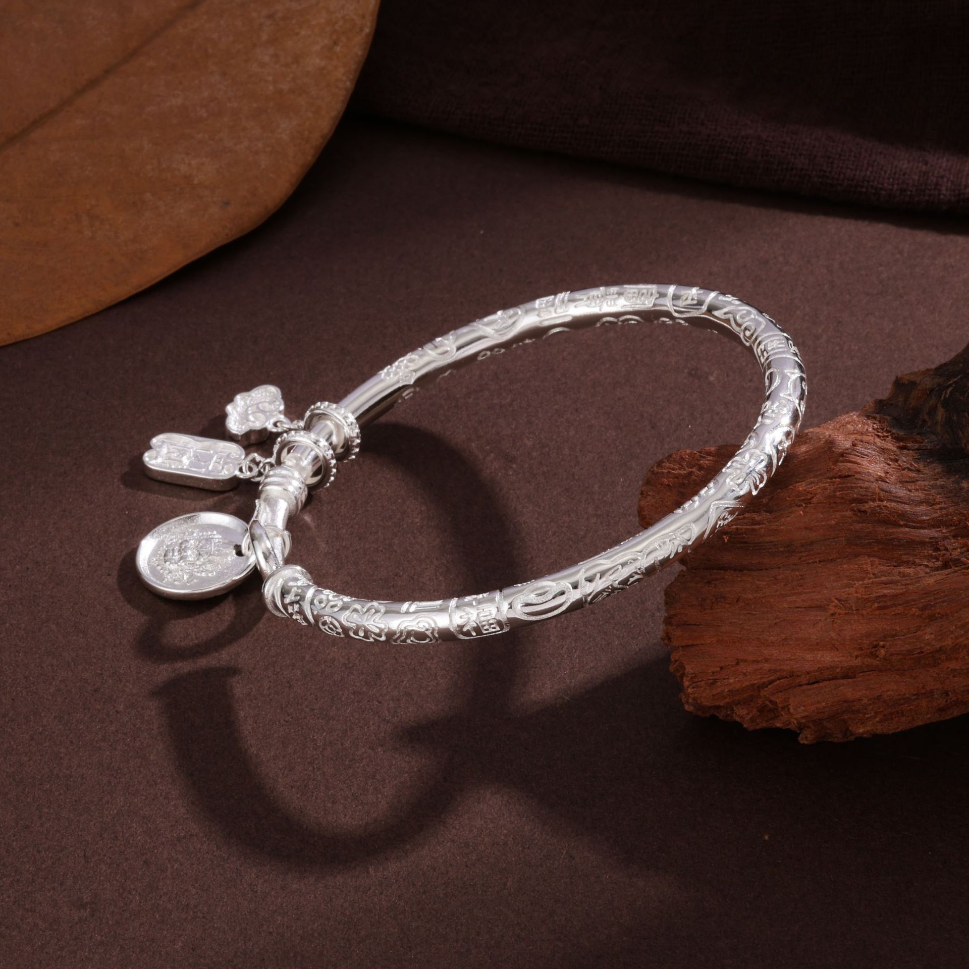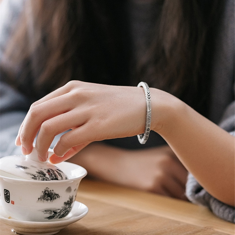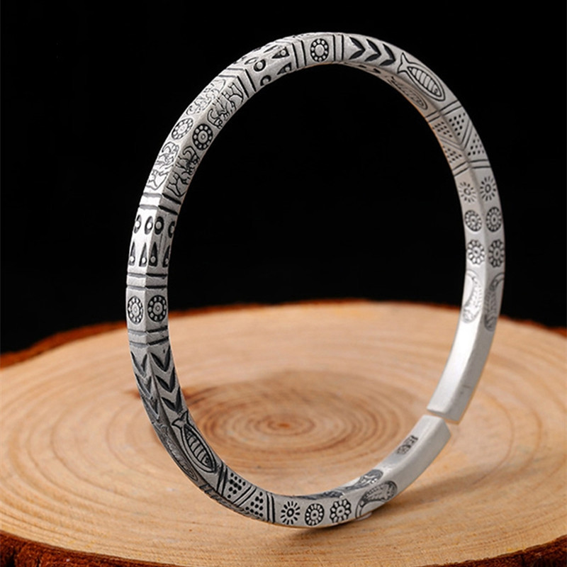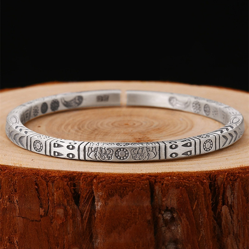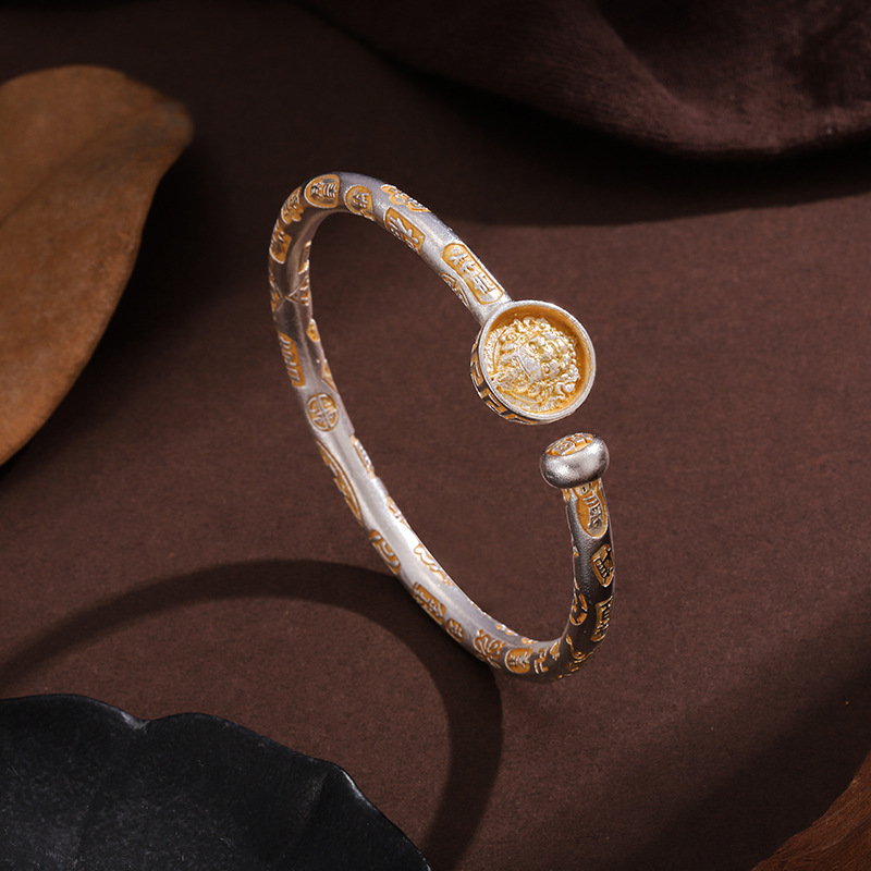 古法伝承メッキ純銀色ブレスレット女性心経フロスト貴妃手環仏経文ブレスレット年長者