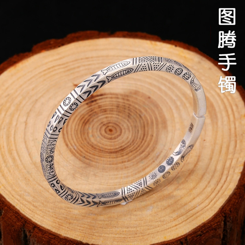 トーテムモビウス環ブレスレット白銅銀メッキレトロ国潮中実男女カップル手環古風簡約金