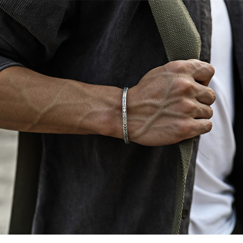 新しい白銅銀メッキラウンドスティック吉言ファッション多用途如意平安黄色の富の神タグロールテールオープンブレスレット