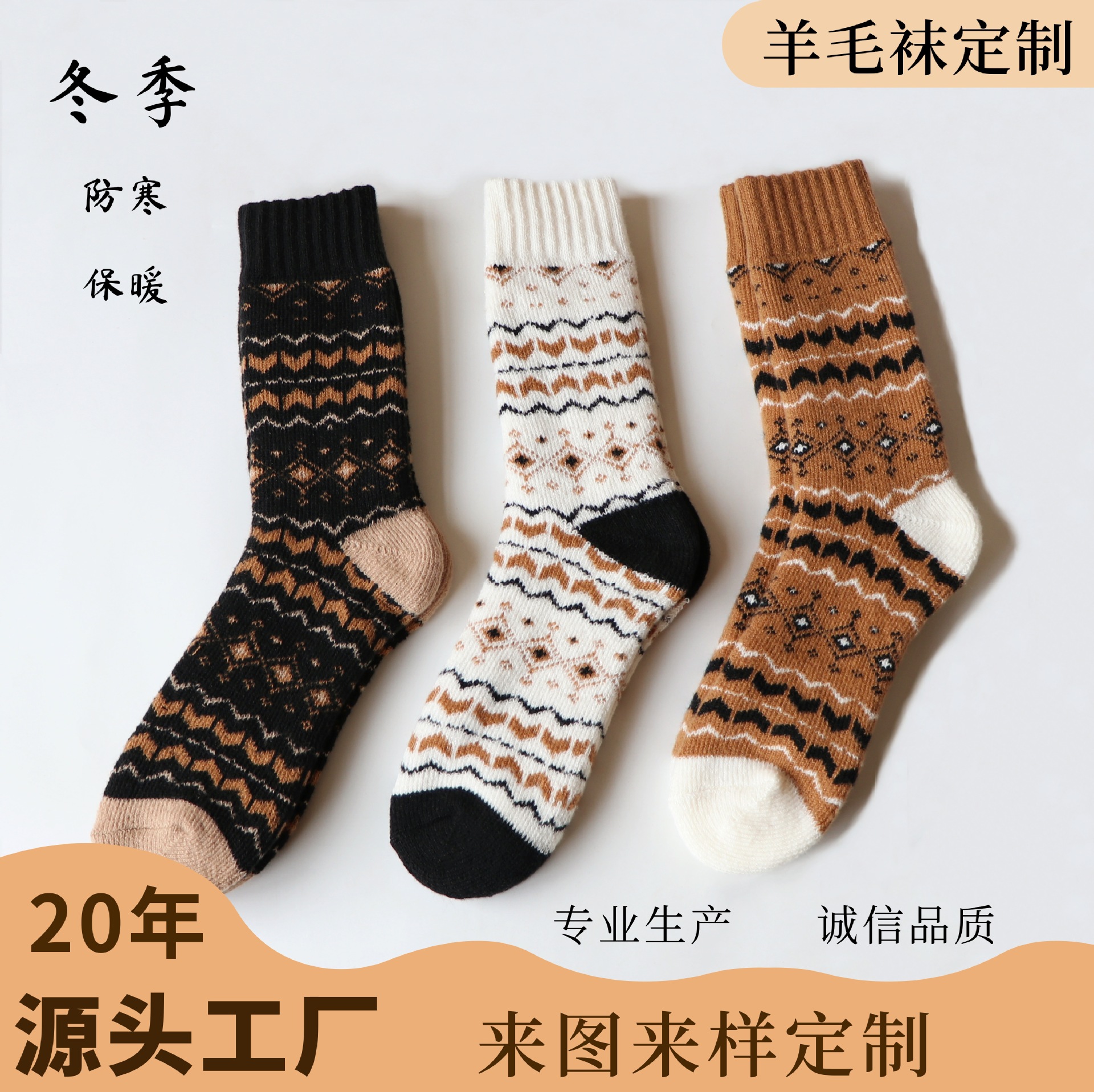 秋冬加绒保暖地板袜加厚复古毛圈袜吸汗防臭中筒袜透气简约袜子女
