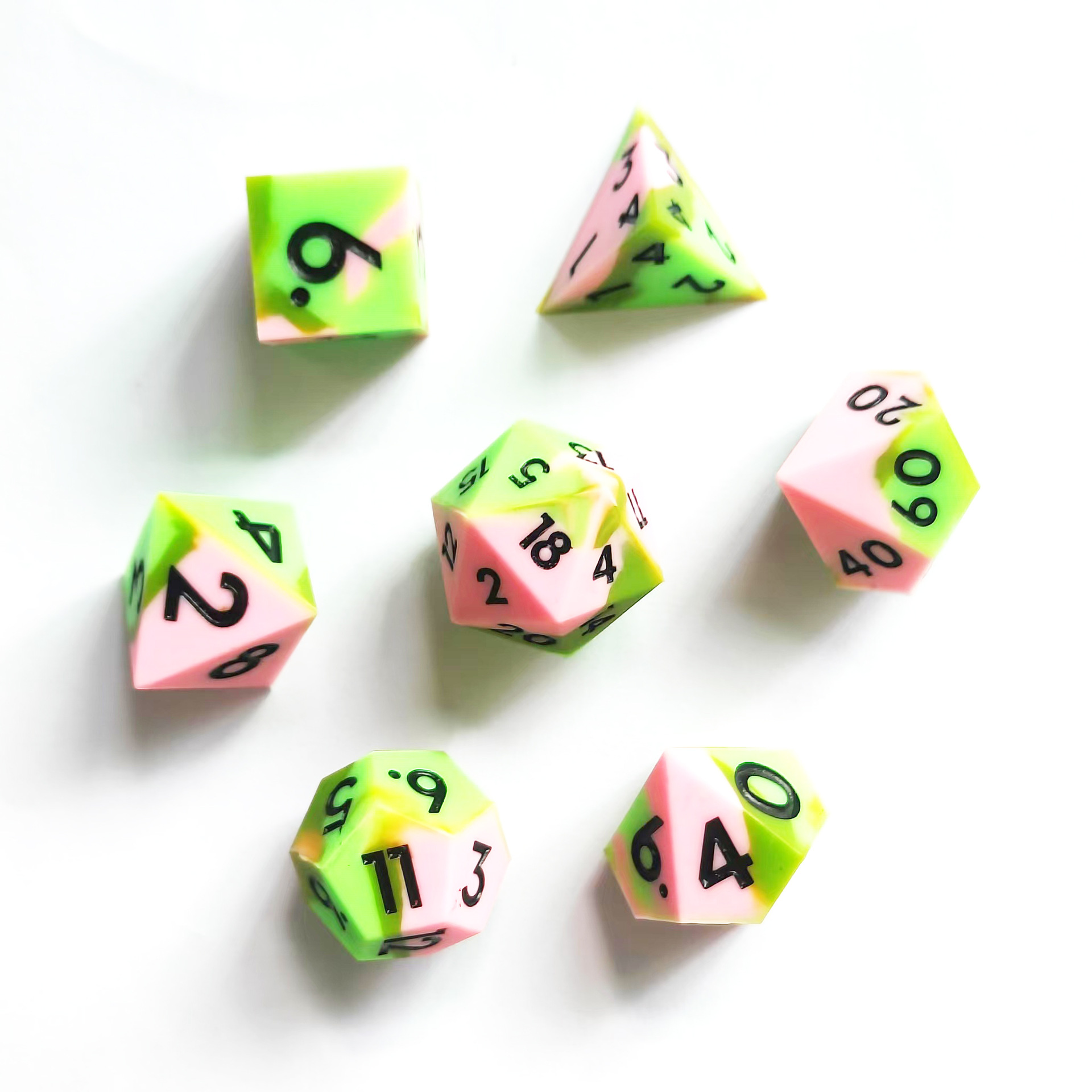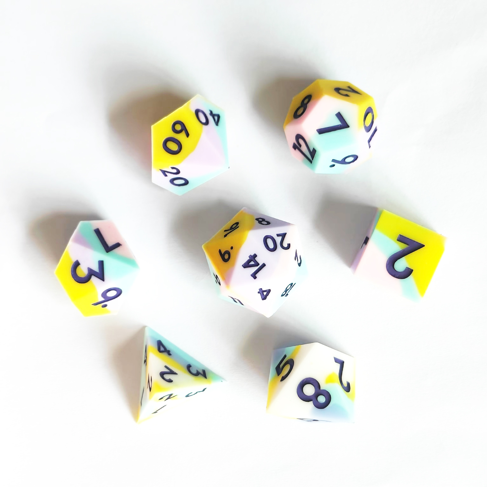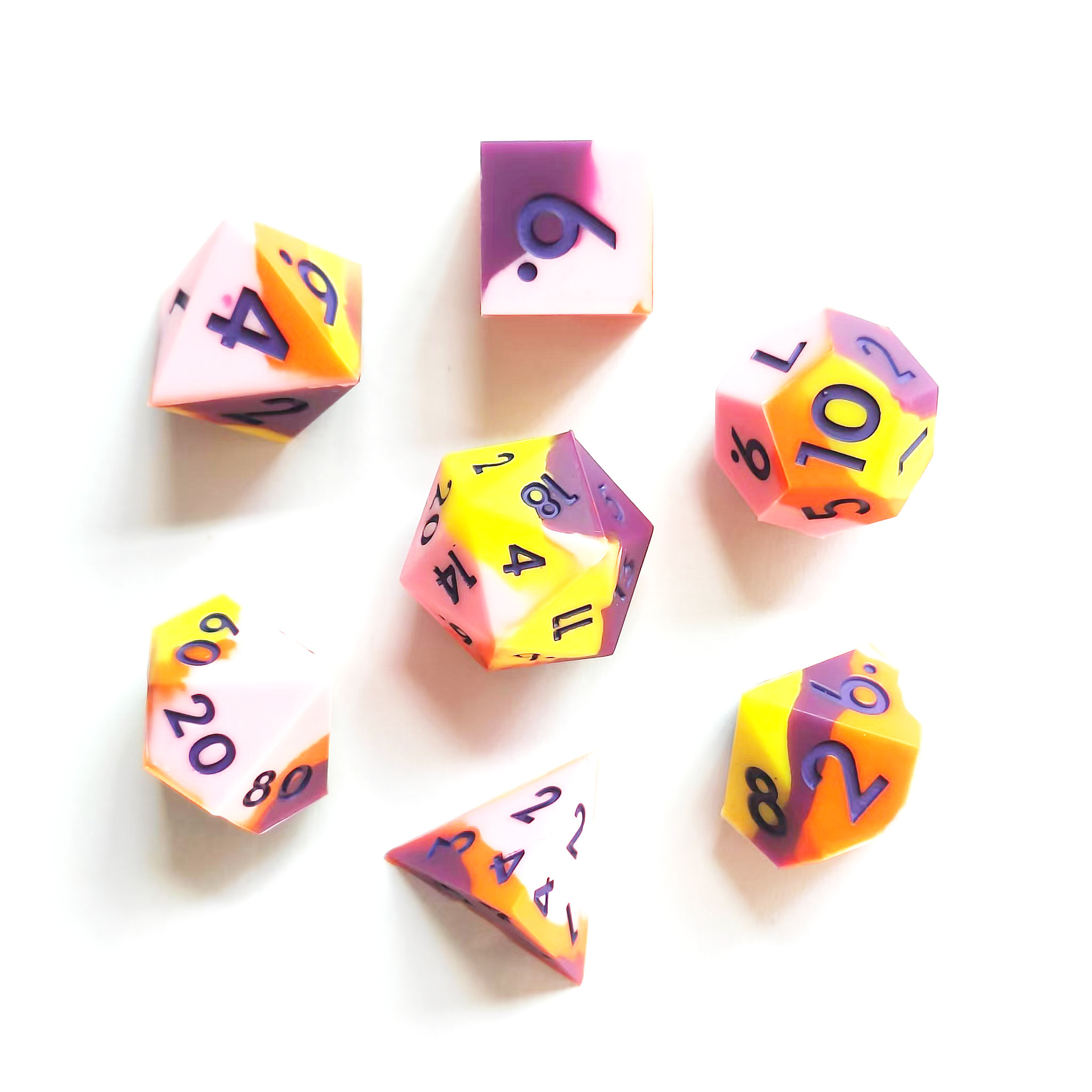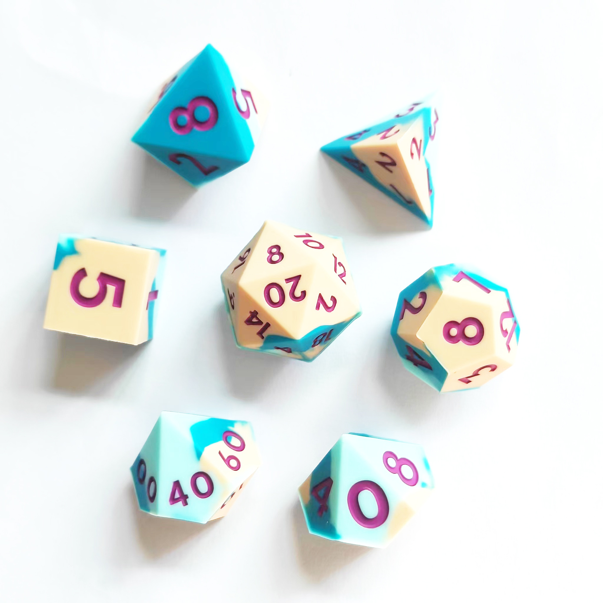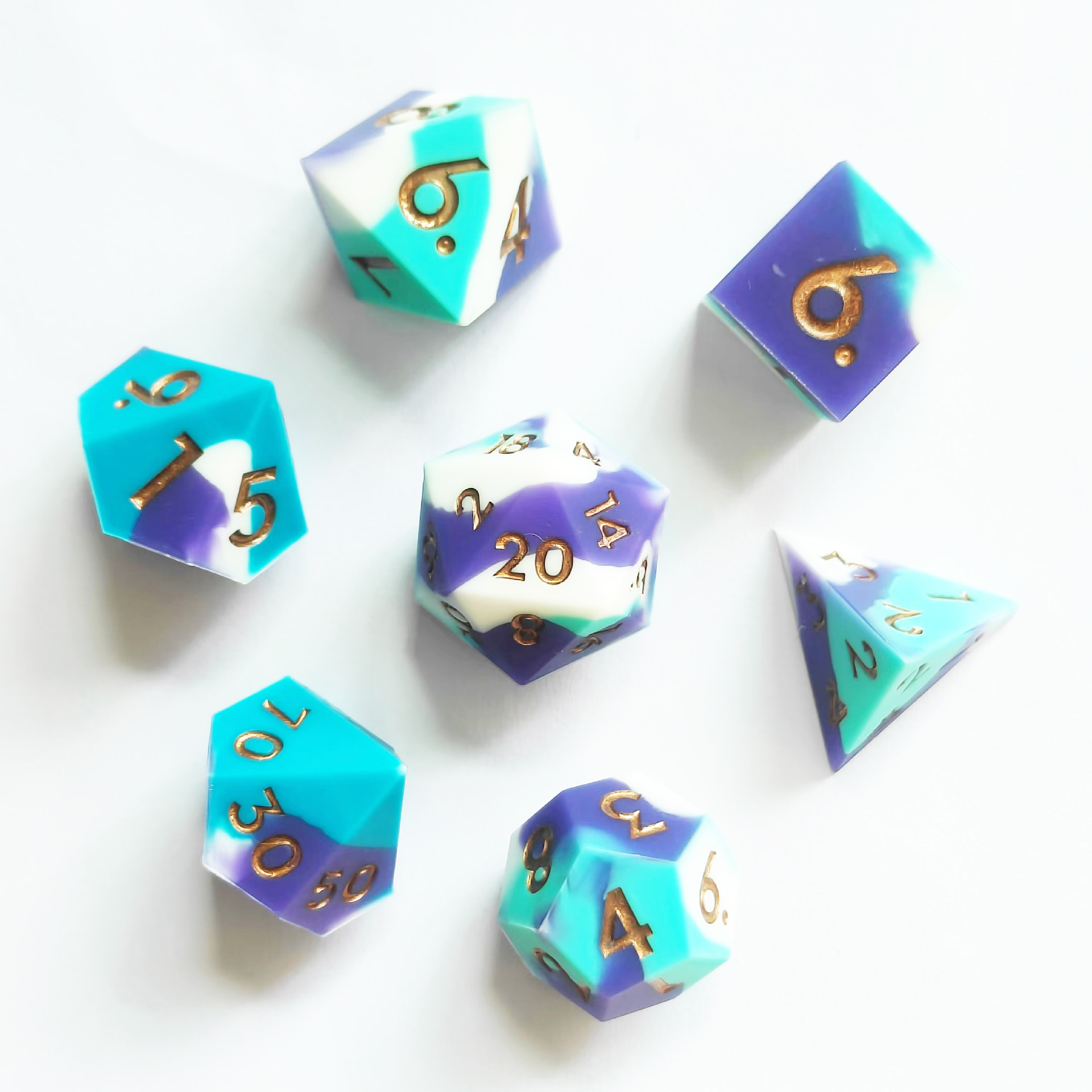 跨境新款碎片树脂骰子DND桌游龙与地下城COC跑团多面骰子套装7粒