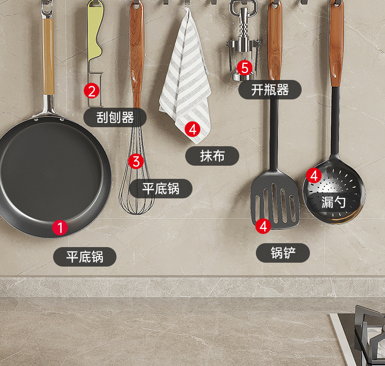 吸盤キッチンフック穴なし棚掛け棒鍋シャベルスプーン刃物一体ハンガー壁掛け式収納棚