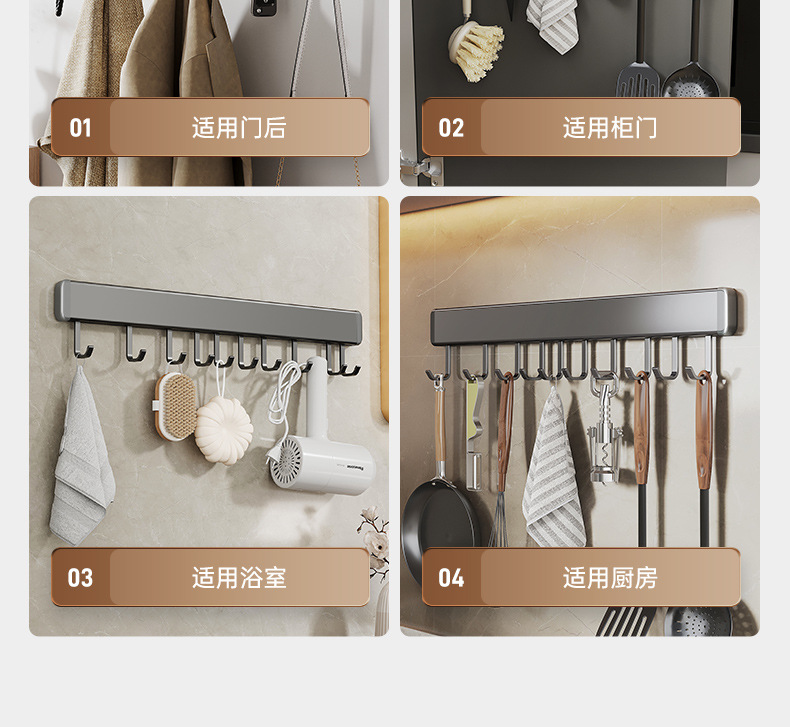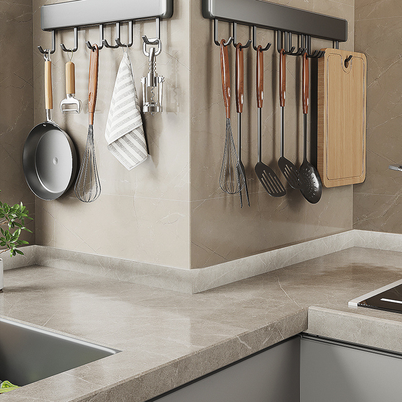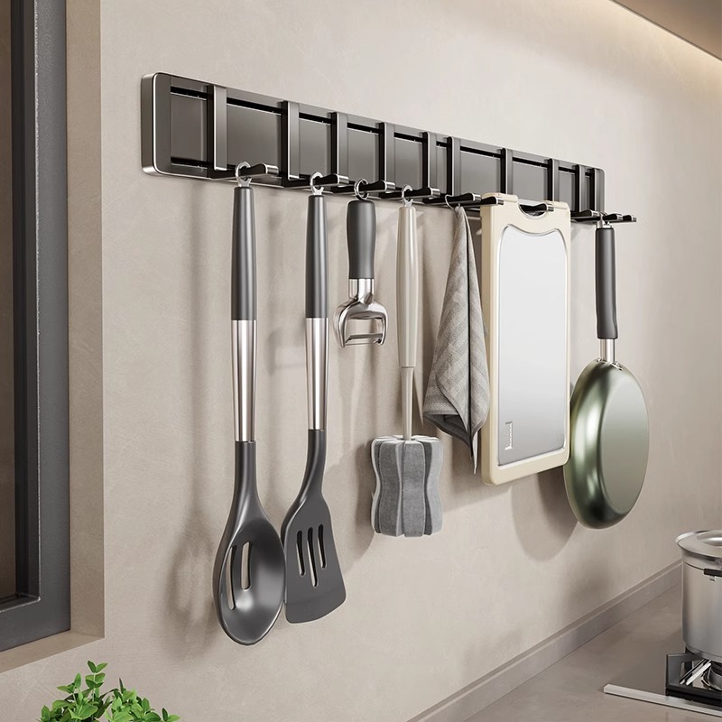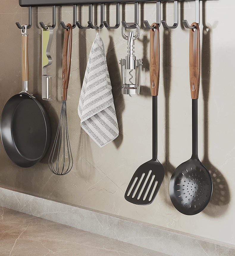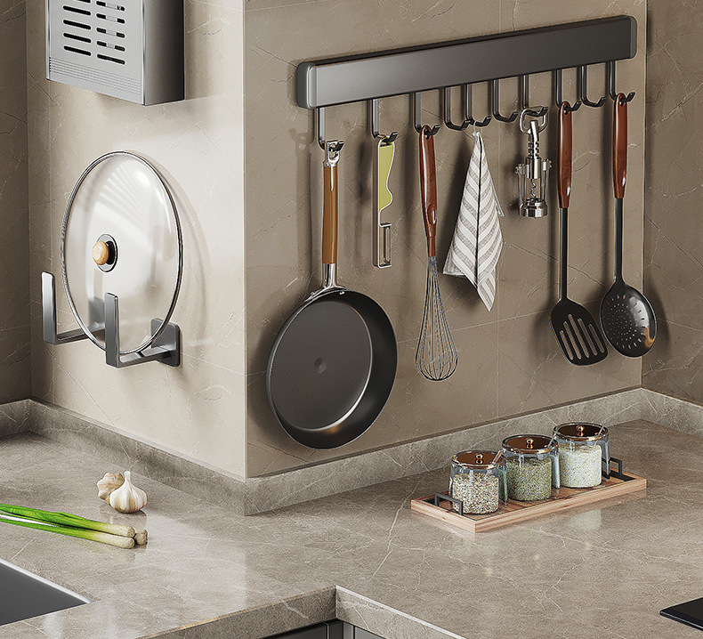 キッチンフック穴なし掛け棒キッチン棚鍋シャベルスプーン掛け棚宇宙アルミフック壁掛け式収納