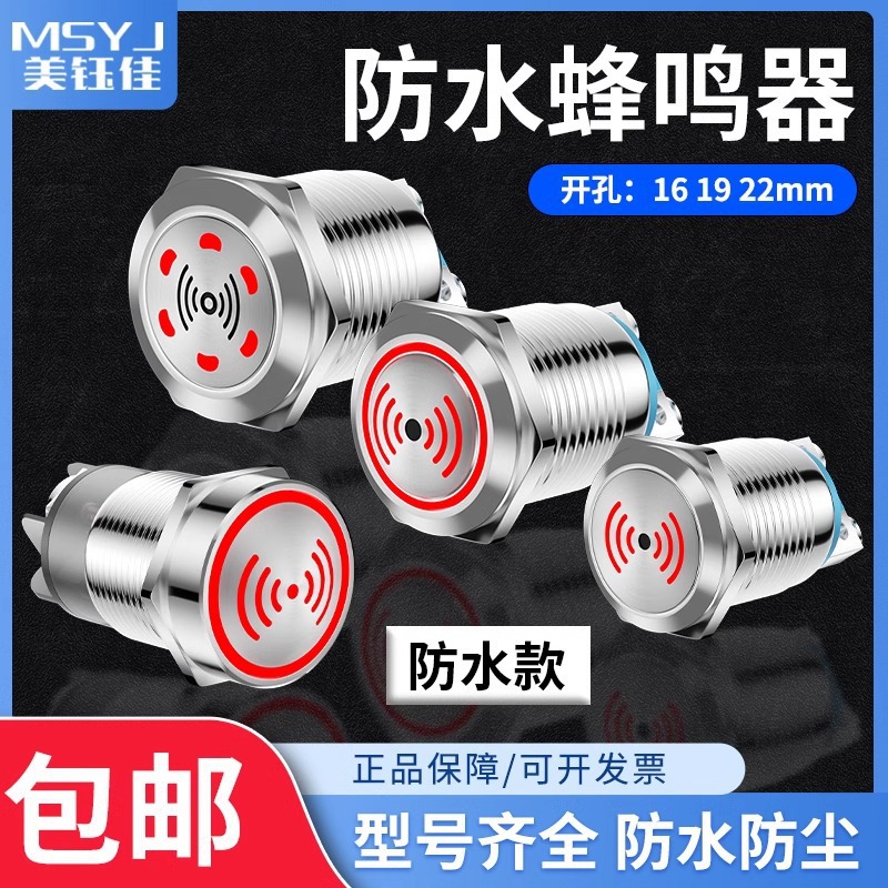 金属闪光蜂鸣器16/19/22mm不锈钢防水报警器LED有声间断12/24v