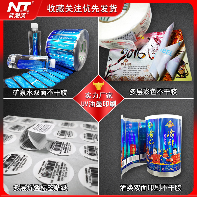 リールステッカー紙ミネラルウォーターボトルラベル貼りカラー両面多層折りたたみ印刷透明ステッカー
