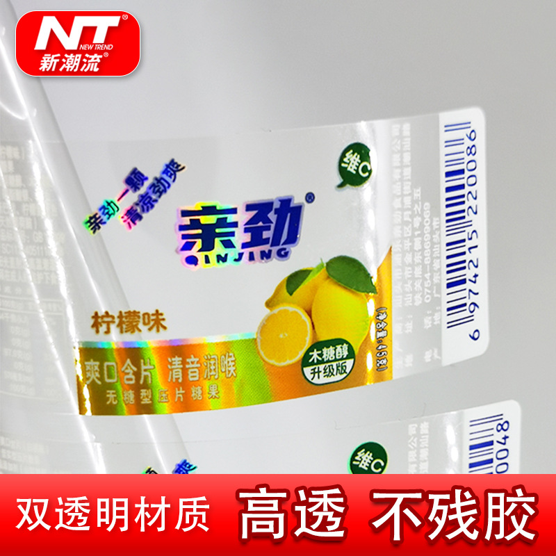 透明pvcラベルはキャンディーガムを含んでいます。
