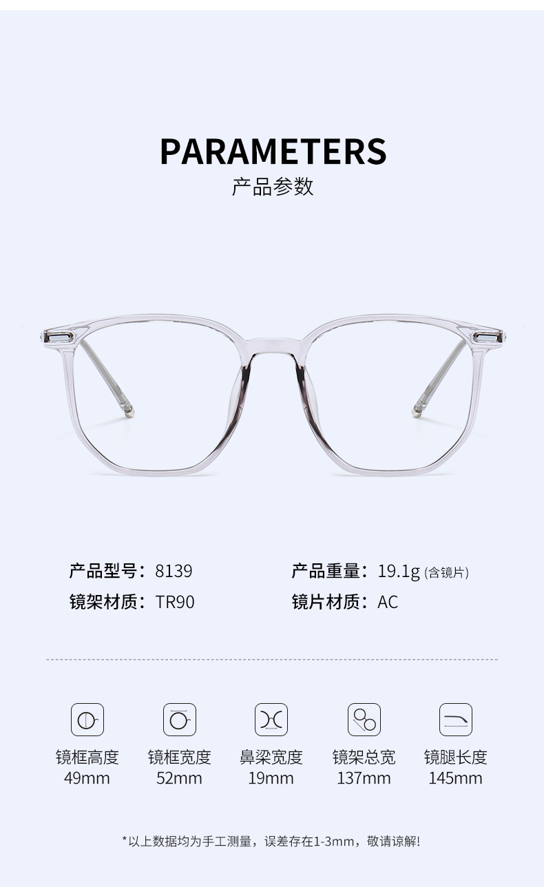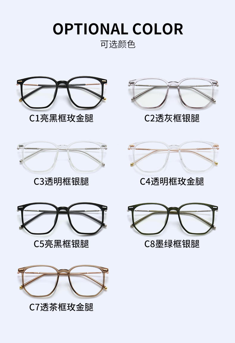 無地の大型フレームの新しい抗青色光メガネハイエンド tr90 ファッショナブルで多用途なメガネフレーム女性用卸売メガネフレーム男性用