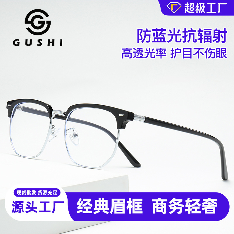 新商品スポット男性tr90金属近視眼鏡フレーム女性眼鏡フレーム高級感ブルーレイ防止眼鏡工場卸売り