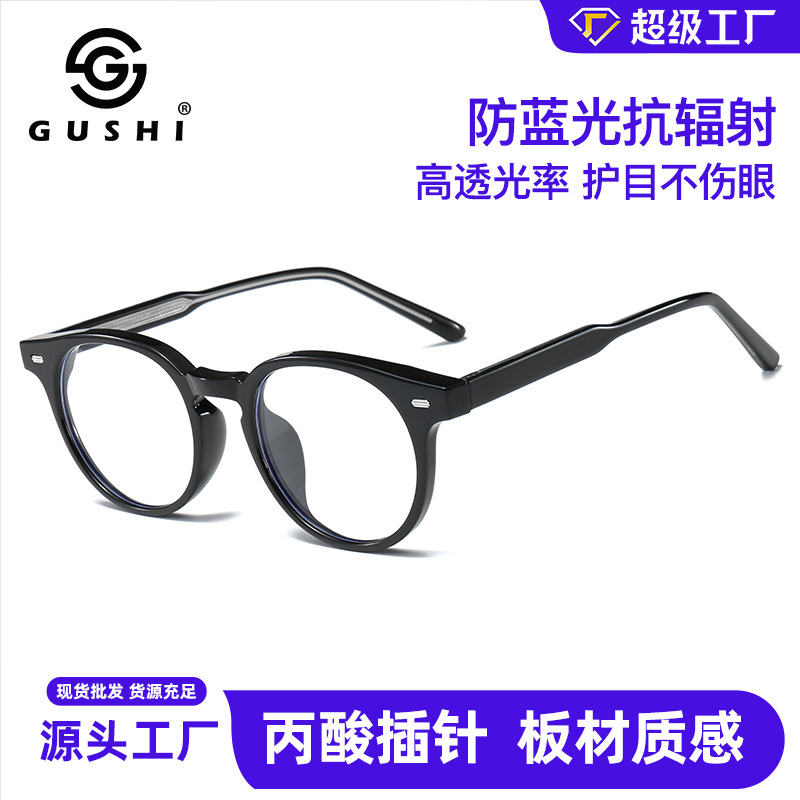 新型ブルーレイ防止メガネファッション百合tr90楕円フレーム男性高級感板材ピンメガネフレーム女性