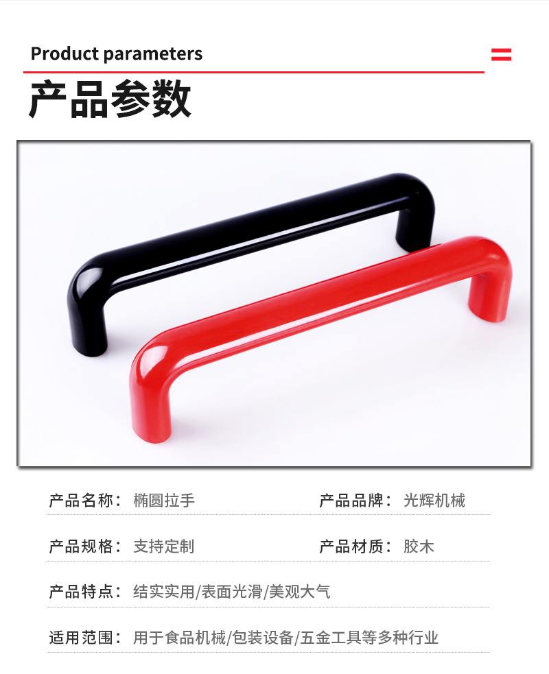 現物黒赤色ゴム木楕円取っ手u型電気木取っ手nc工作機械電気盤電気箱取っ手