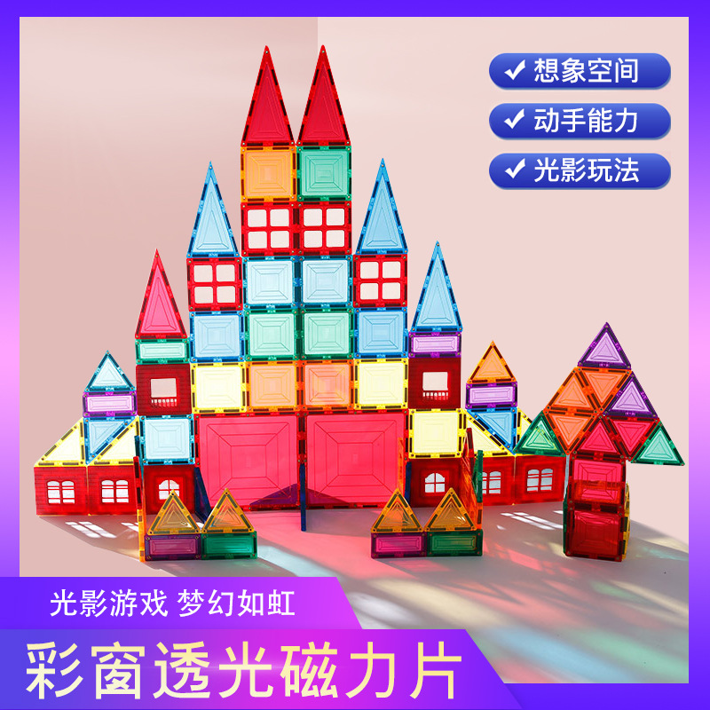 クロスボーダーカラー窓磁力片磁気積み木散片補充装子供玩具プレゼント透明男の子卸売り女の子