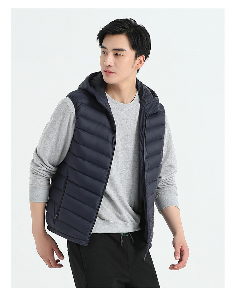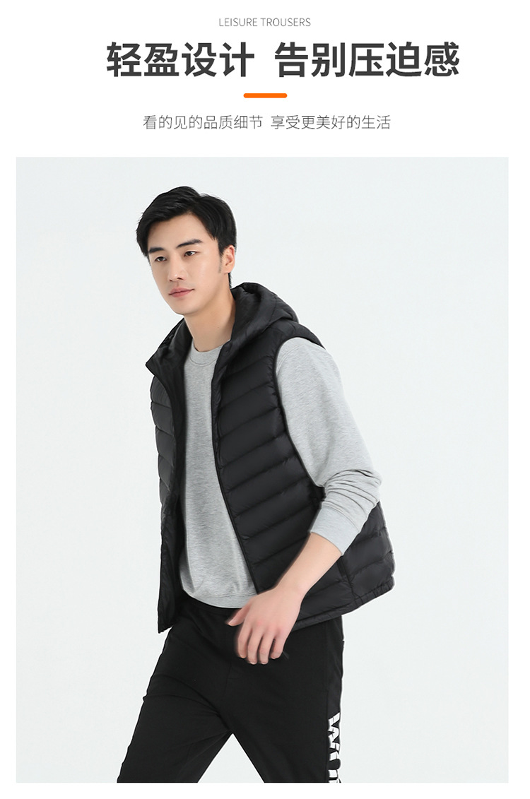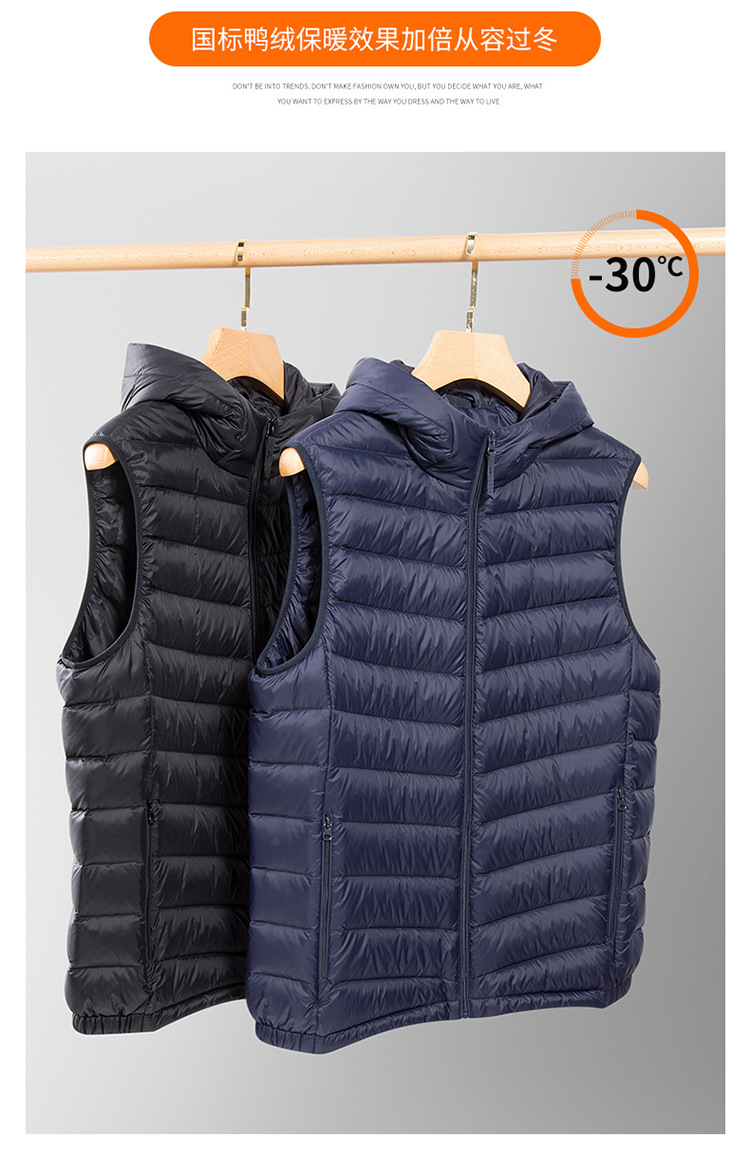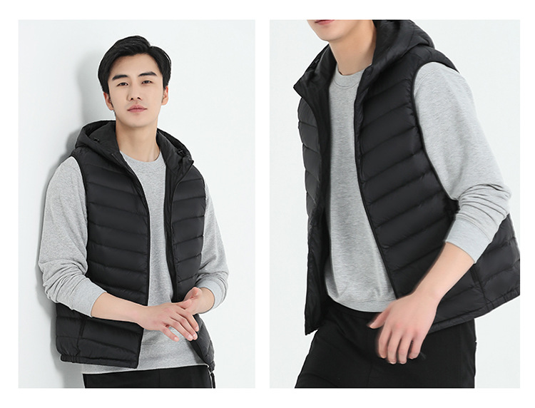 秋冬季80白鸭绒男士连帽加厚防风保暖轻薄无袖羽绒服韩版定制Logo
