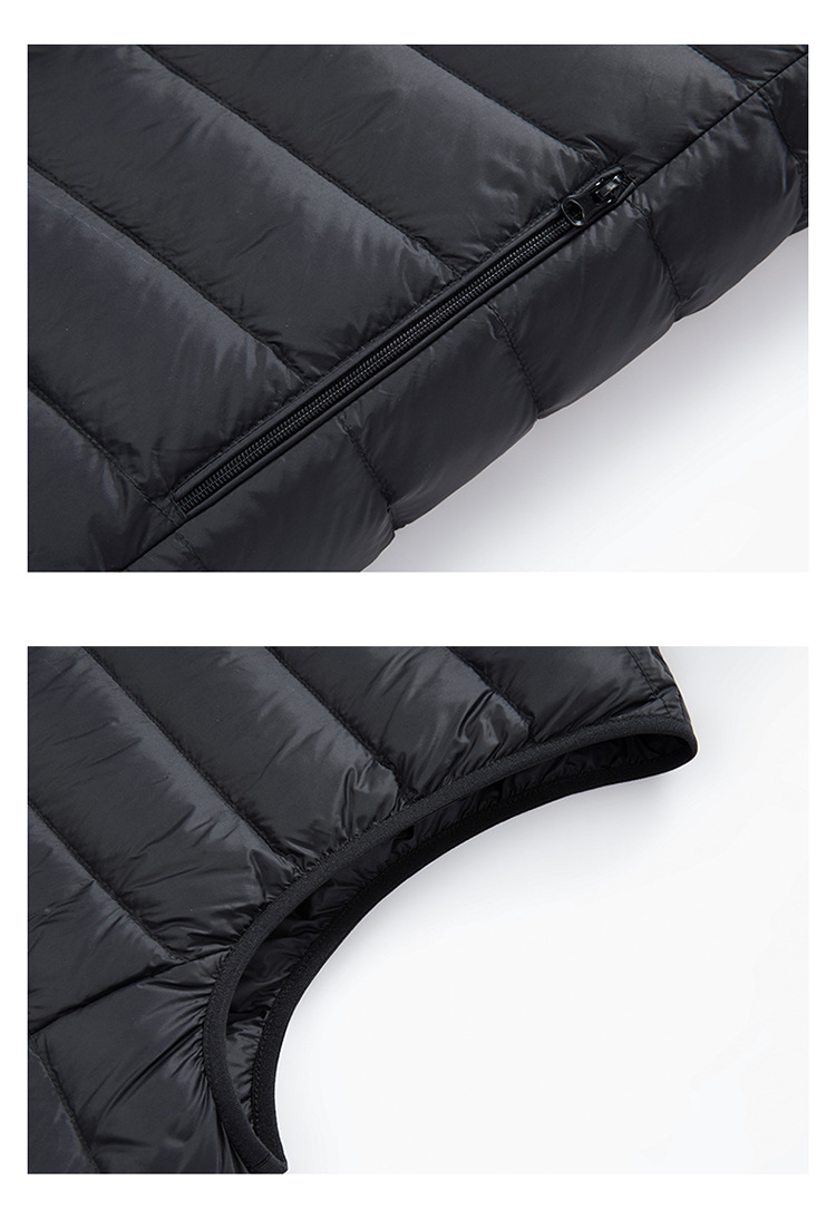 ユニクロ同風メンズダウンベスト、軽量ホワイトダックダウンウォームベスト、無地スタンドカラーベスト、ベストダウンジャケット