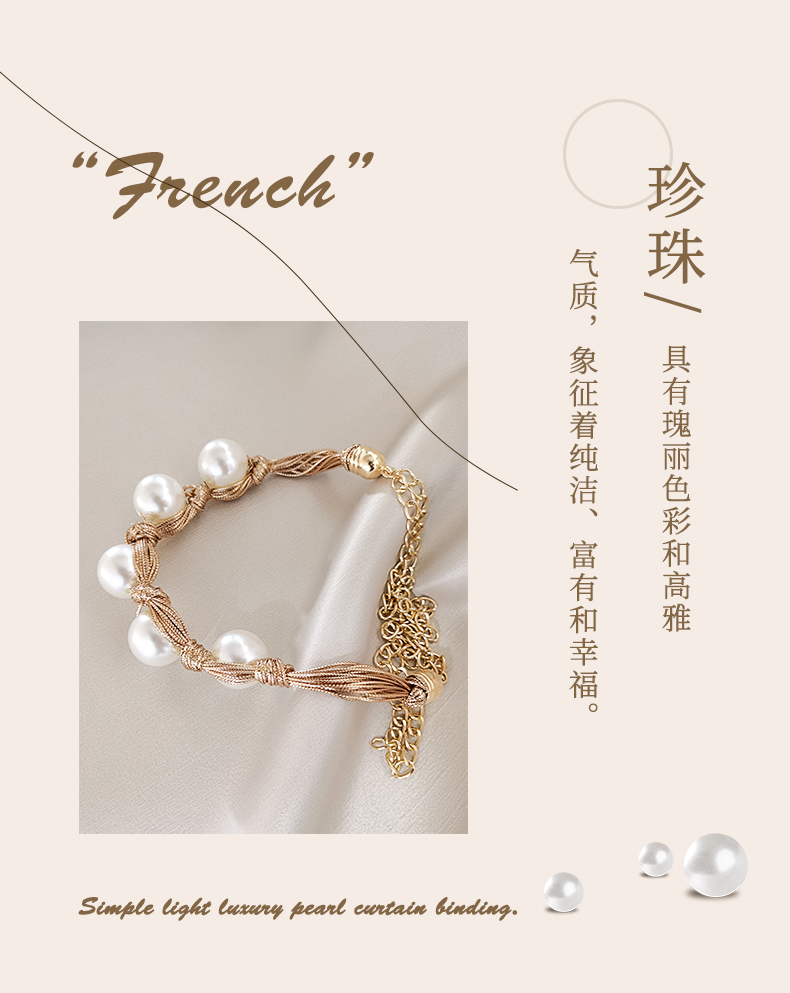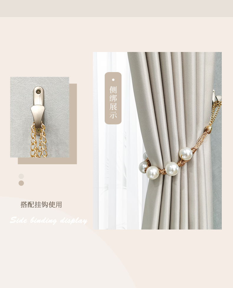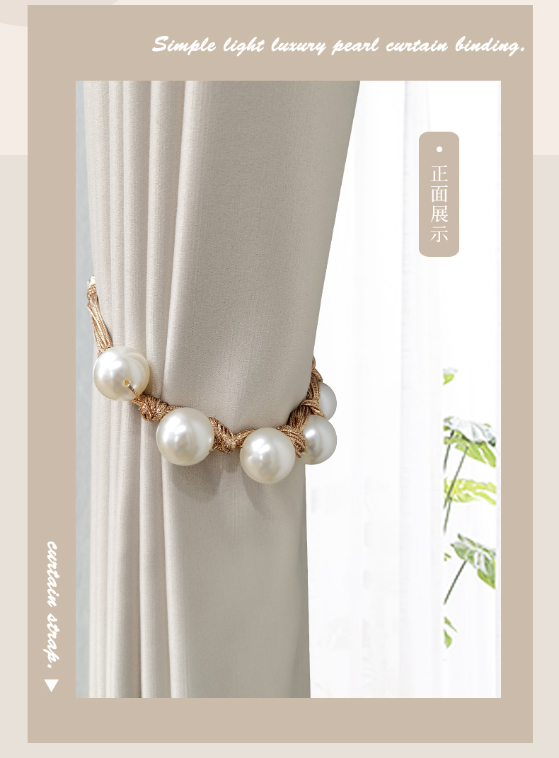 パールカーテンのストラップはフランス式の軽くて豪華なカーテンのフックのストラップが可愛いです。