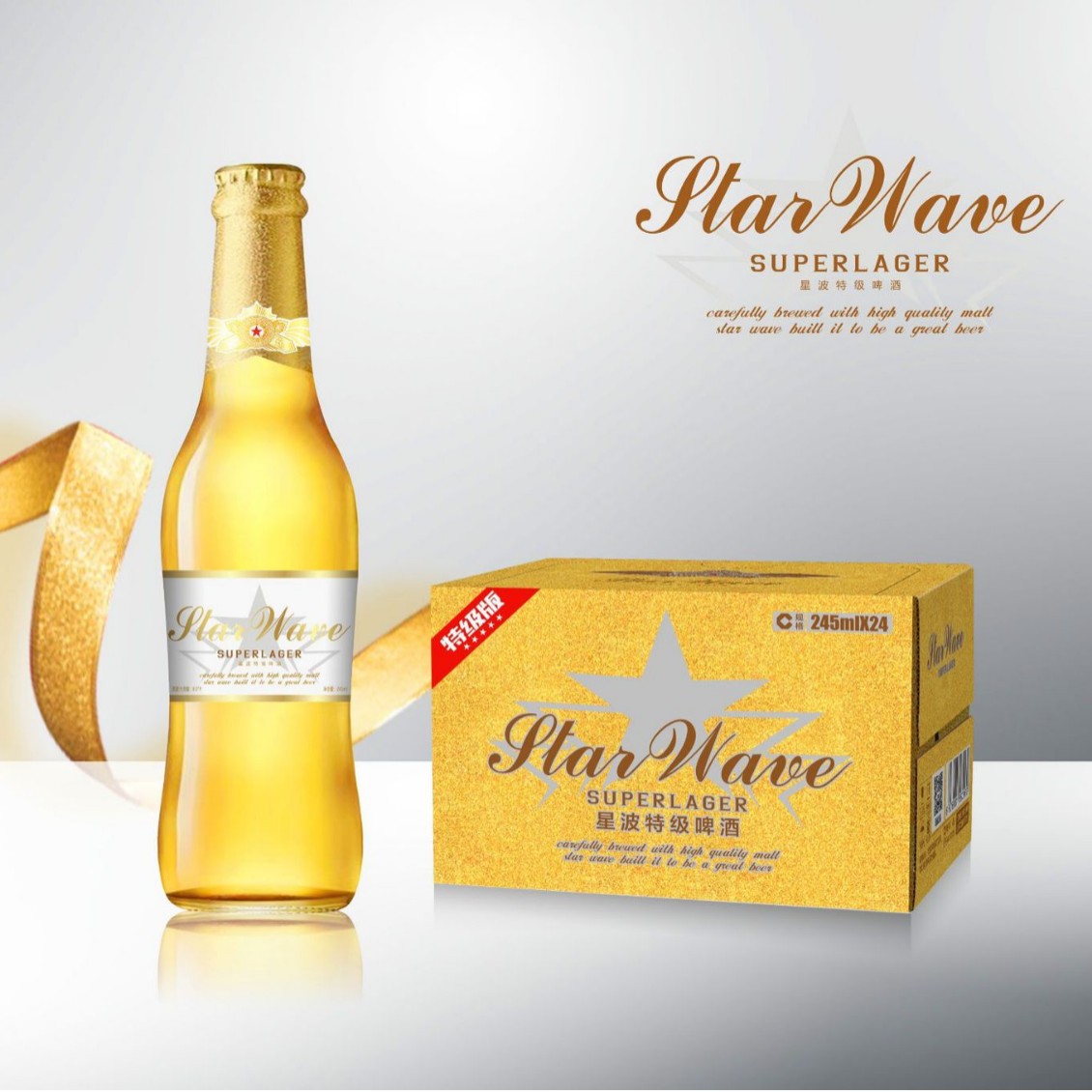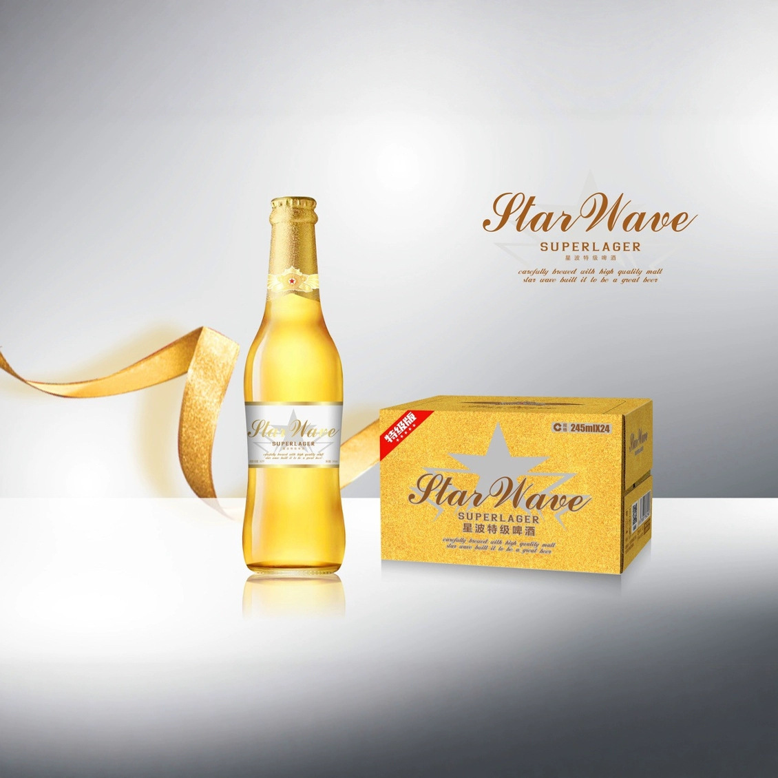 星波纯生啤酒245ml*24瓶装整箱酒吧酒馆专用小瓶啤酒KTV夜店批发
