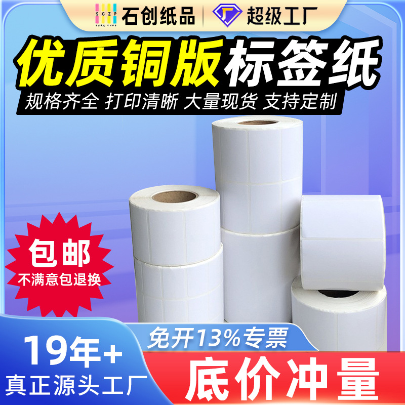 空白铜版纸不干胶标签纸碳带条码打印纸100x8060503020标签纸现货