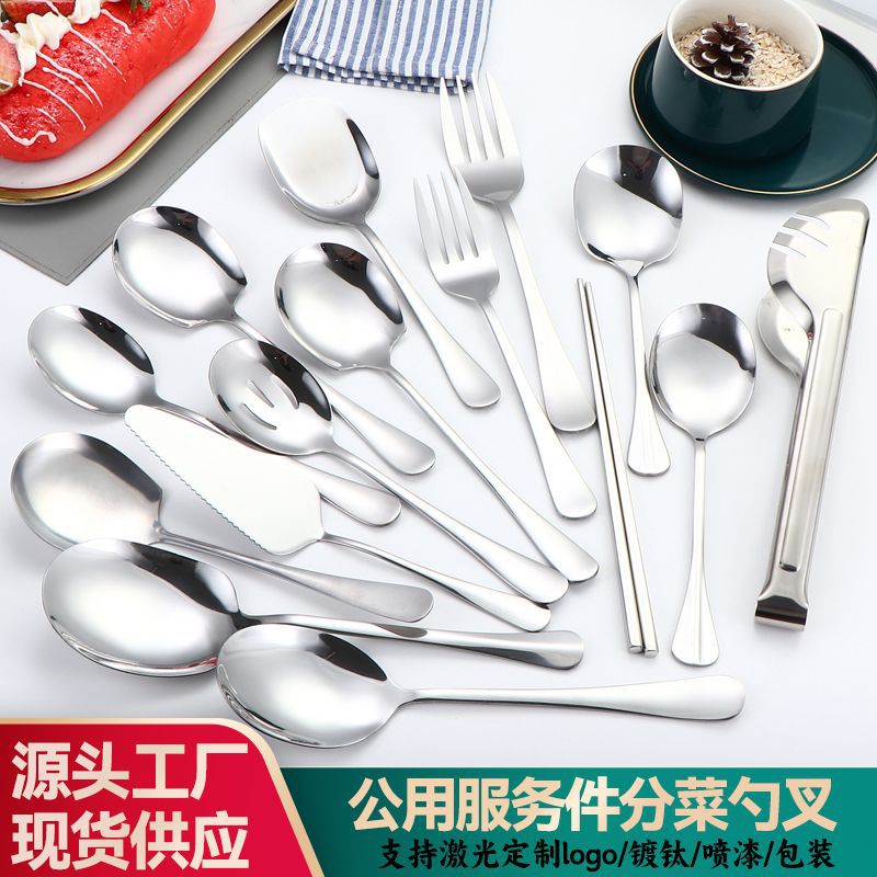 跨境不锈钢公用勺酒店餐厅分菜勺叉子漏勺汤勺食堂服务勺漏铲餐具
