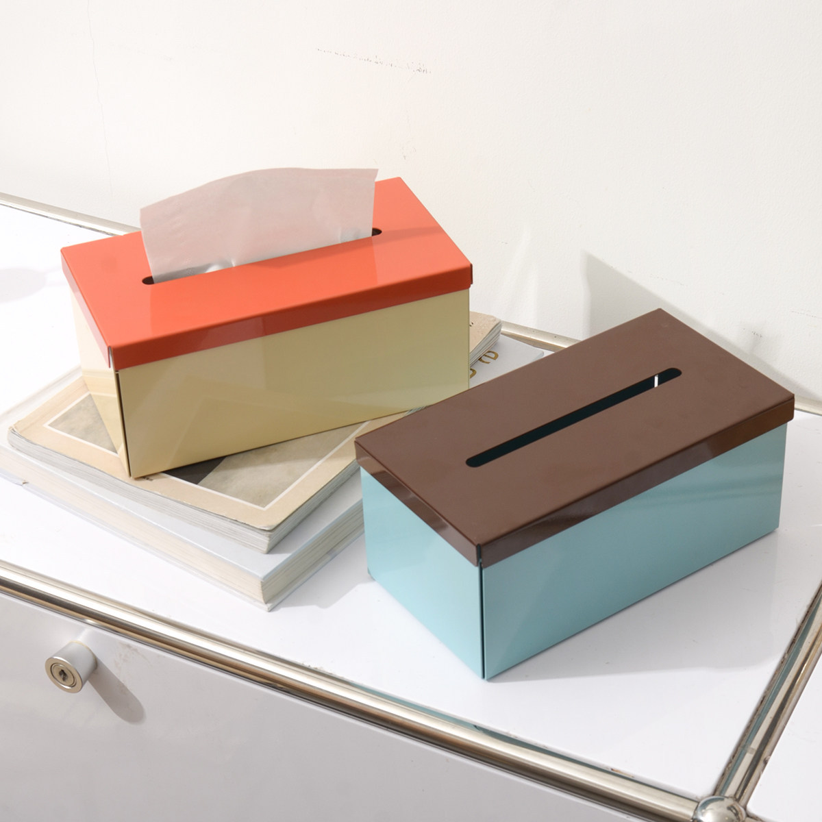 高档现代桌面撞色铁艺纸巾盒家居客厅桌面抽纸盒湿巾纸收纳盒