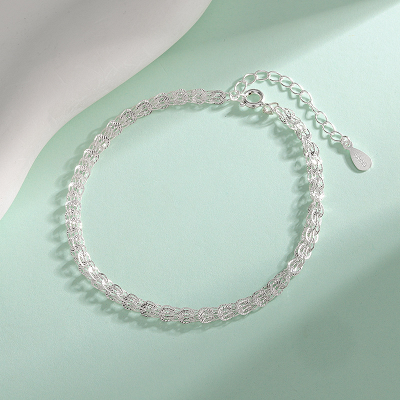 S999シルバーフェニックステールブレスレット、ニッチデザイン、波紋模様、韓国風、親友チェーン、軽贅沢、高級感、星空のような輝き