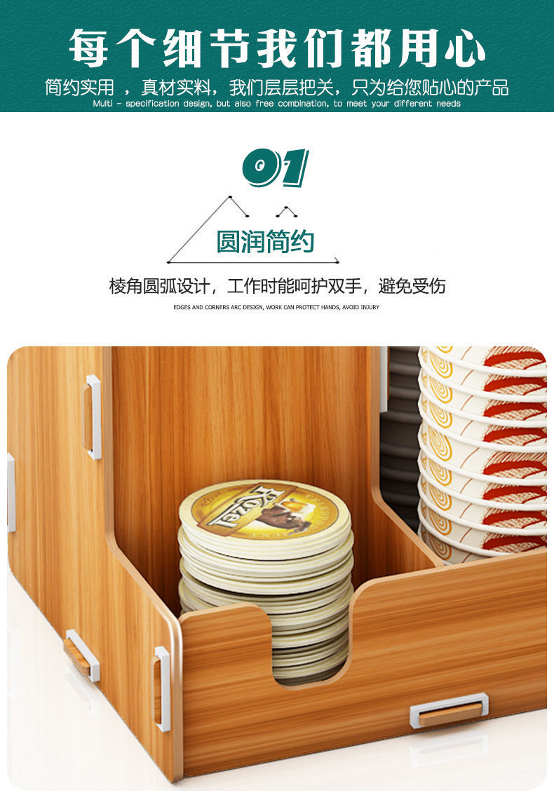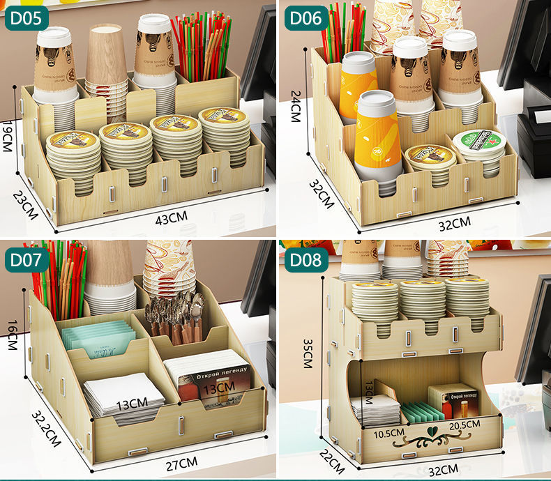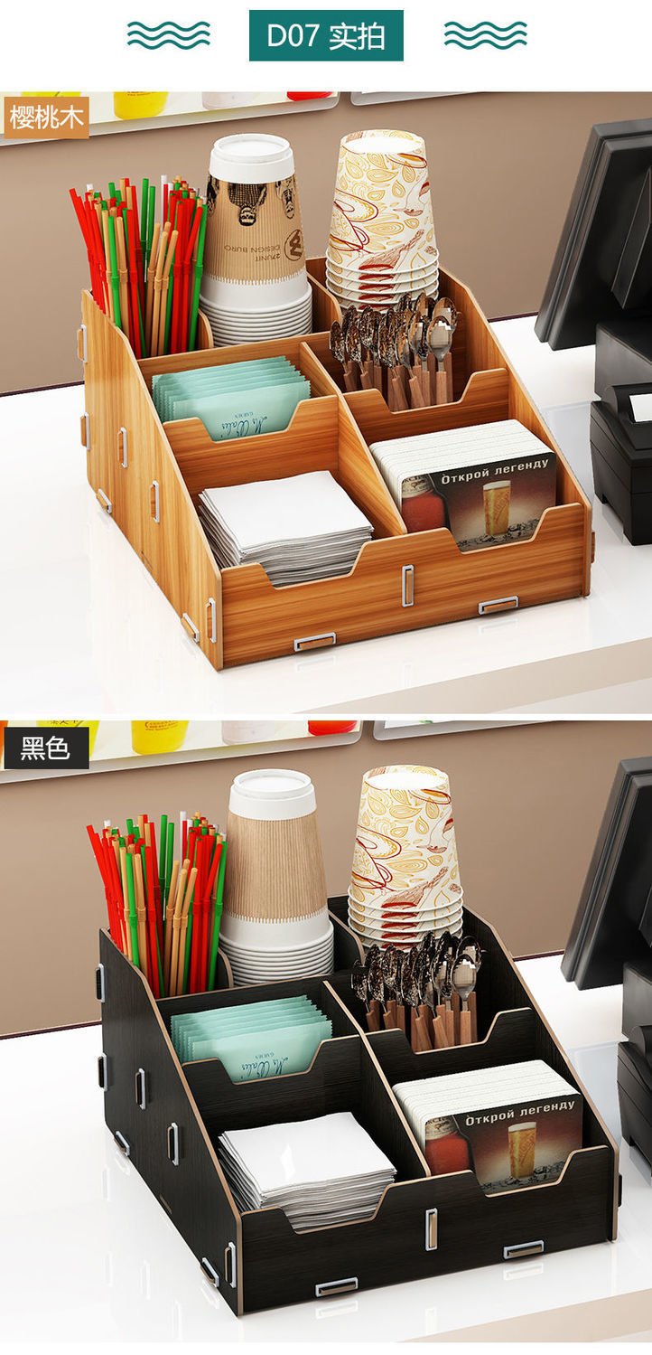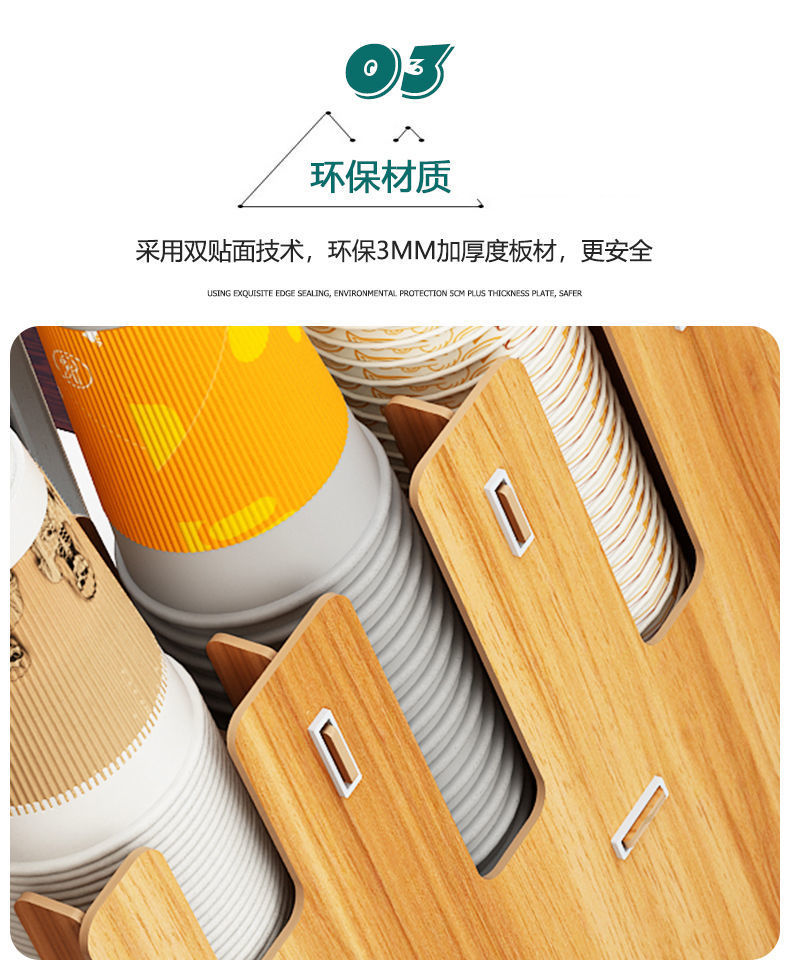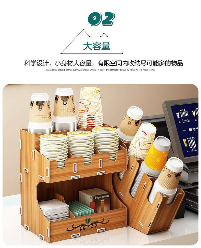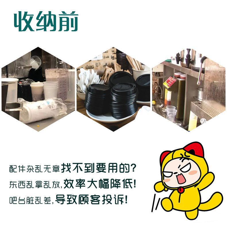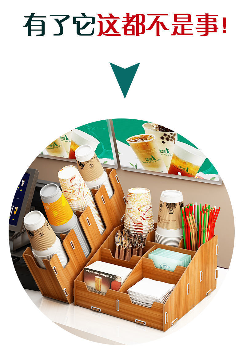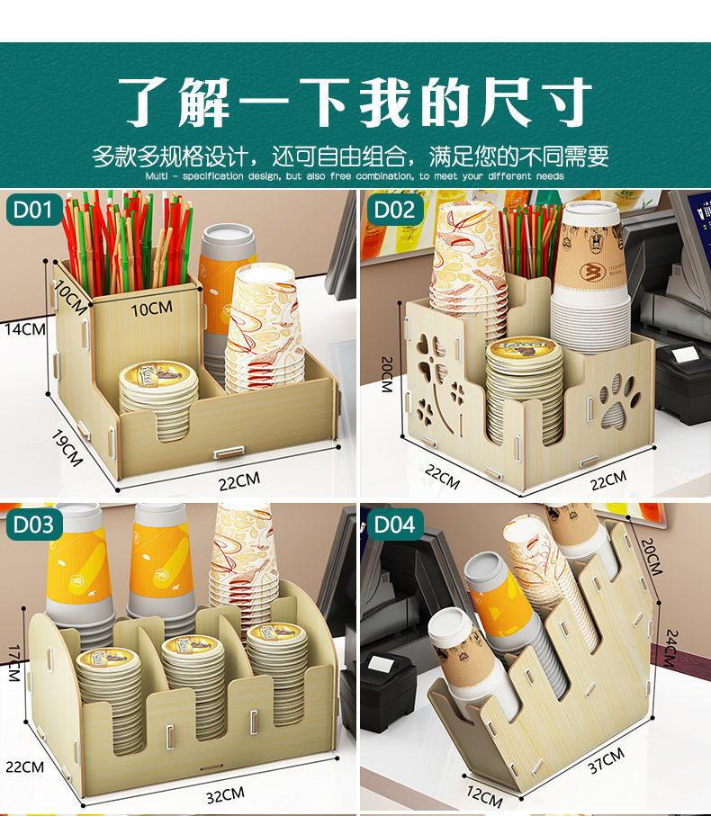 使い捨て紙コップ収納棚ミルクティー店はカップを取っています。