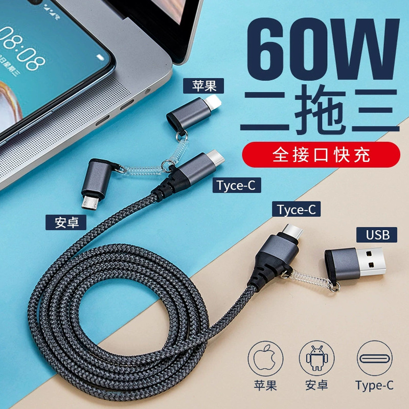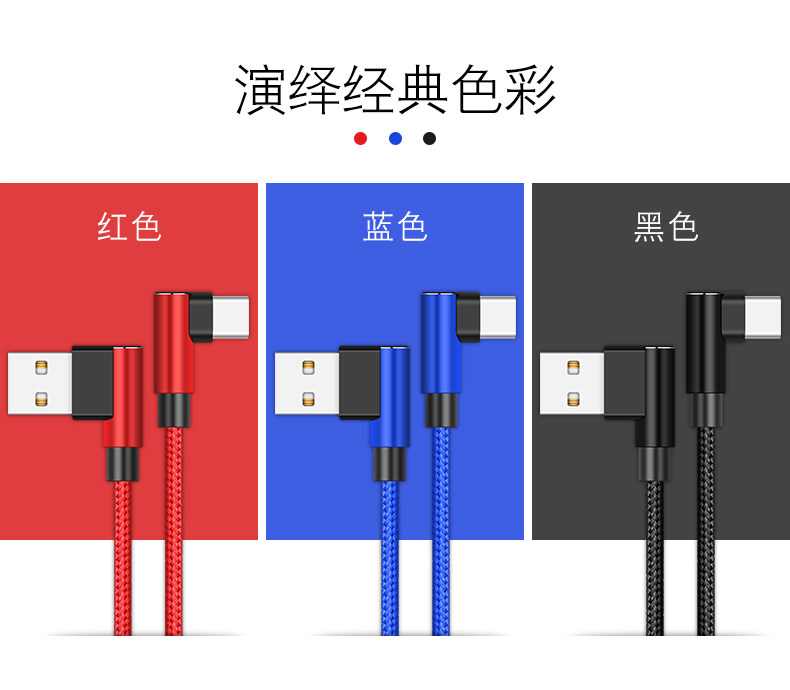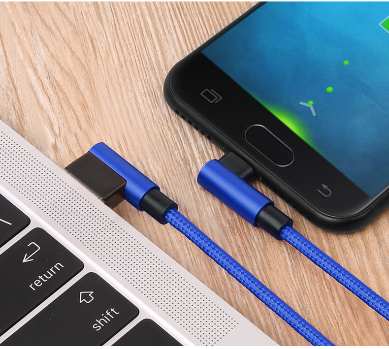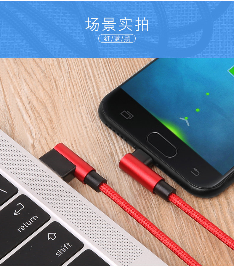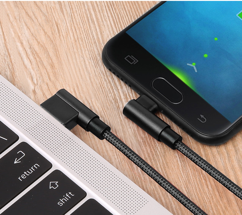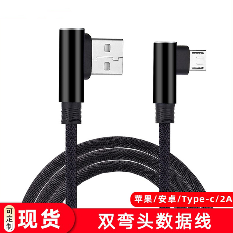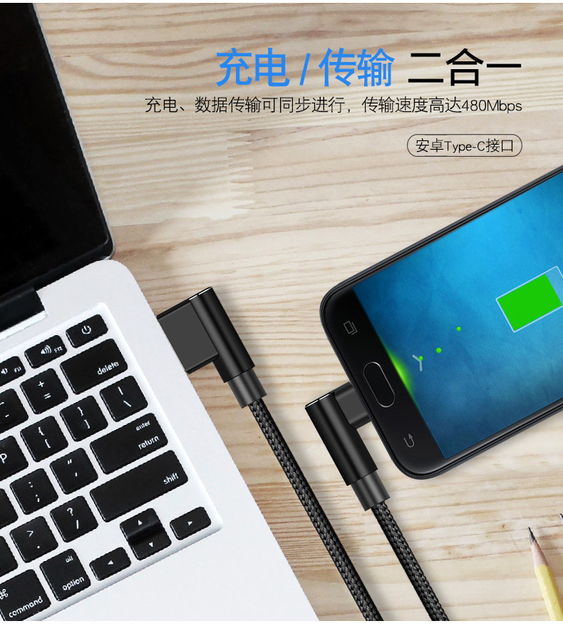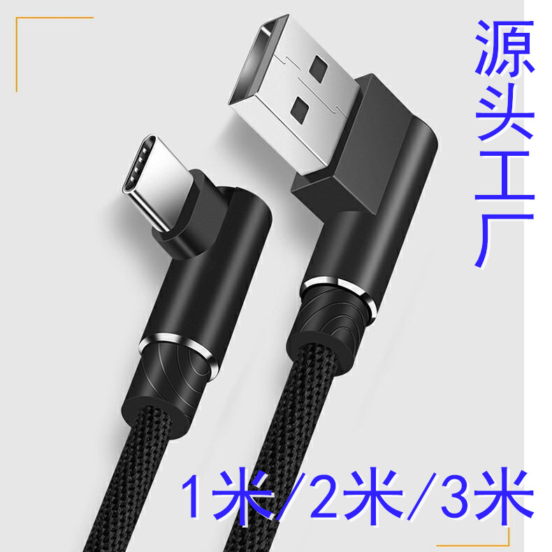 適用アップルアンドロイドデータ線usbナイロン編組手遊び充電線typecダブルエルボーデータ線卸売り