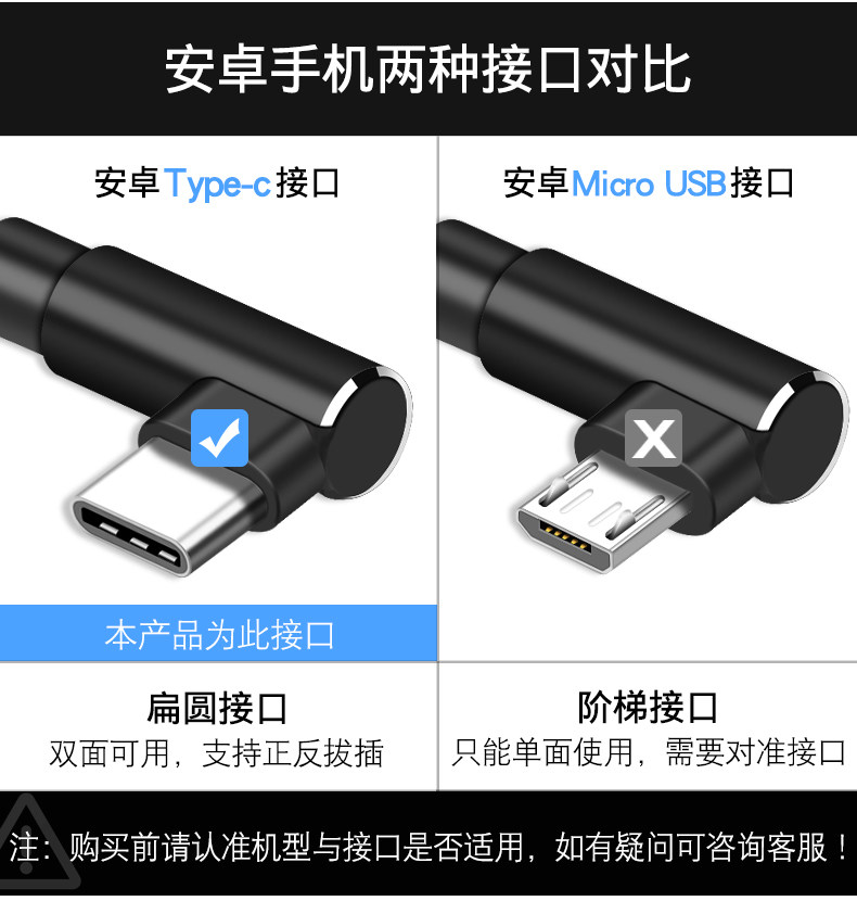 Type-C快充双弯头数据线适用华为荣耀小米oppo充电器线车载USB冲