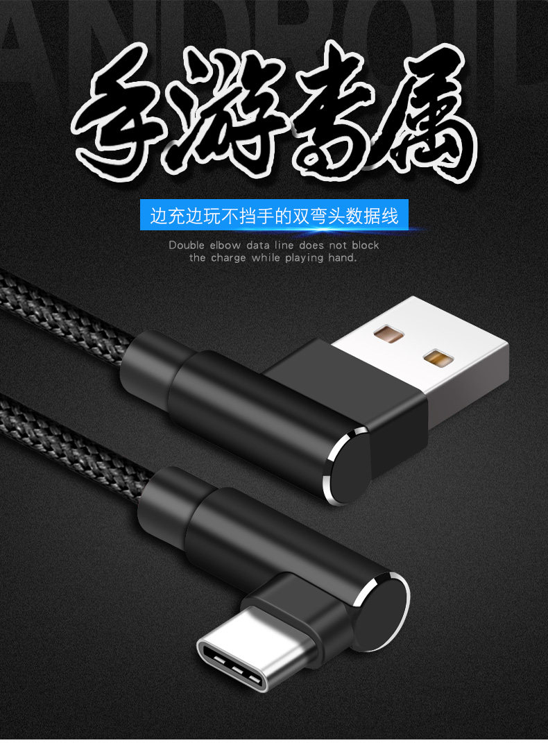 ダブルエルボ Type-c データケーブル布織り USB Android 携帯電話ユニバーサル充電ケーブルゲームは手をブロックしません