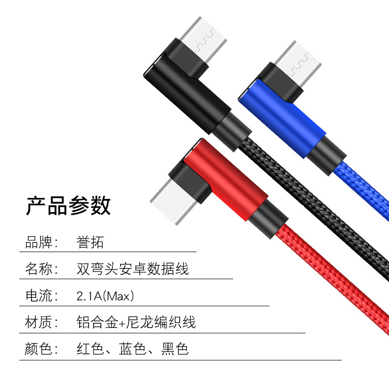 ダブルエルボ Android マイクロデータケーブル充電器ケーブル編組高速充電チキンモバイルゲーム拡張携帯電話アンチブレーク