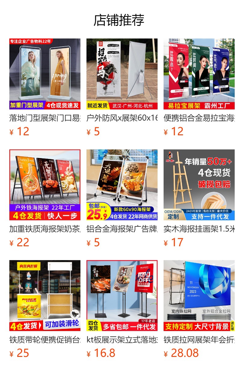 1.海报架单款产品一个也正常发出, 点代发即可,整箱价更优,快递、快运破损包赔.