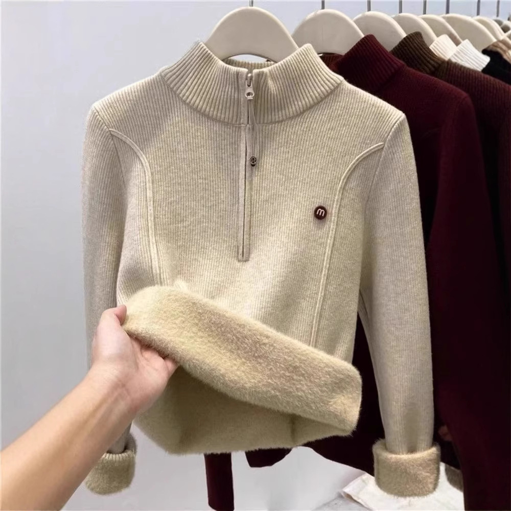 一体型のベルベット生地、高級感がありとても美しいセーター、冬用厚手2025年新作、秋冬用裏起毛インナー