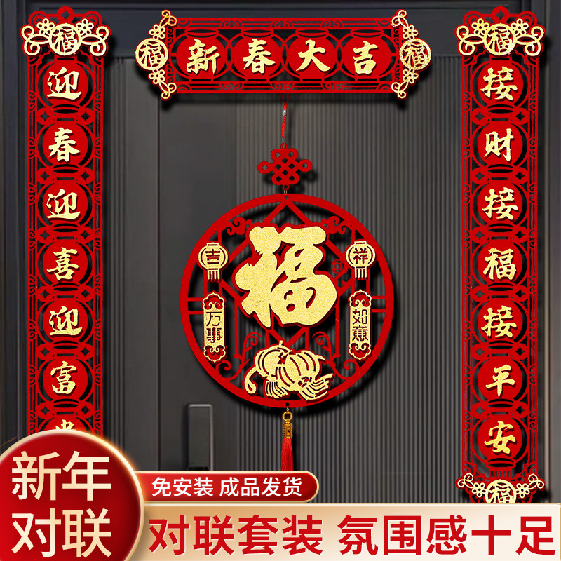 龍年春節対聯家庭用正月春聯門聯立体絨毛布カット紙福字貼り創意入戸門装飾