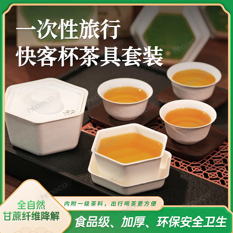 新製品在庫あり六角形パルプティーセットカップ分解性抗火傷環境に優しいサトウキビ繊維使い捨てティーセット