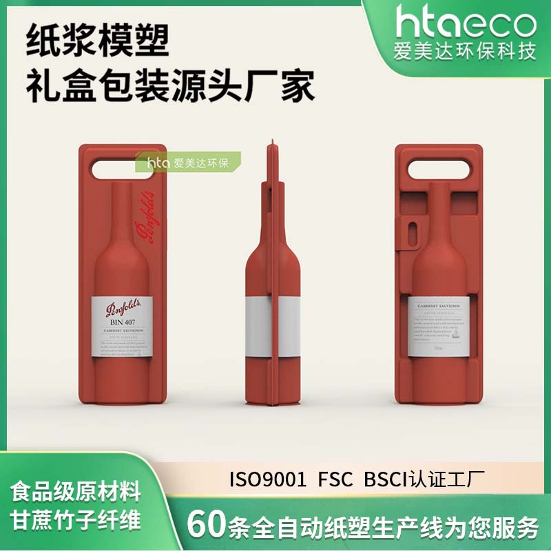 バッチカスタマイズされた生分解性赤ワインインナーホルダー、環境に優しいサトウキビ植物繊維耐衝撃包装、ワインパルプ包装箱
