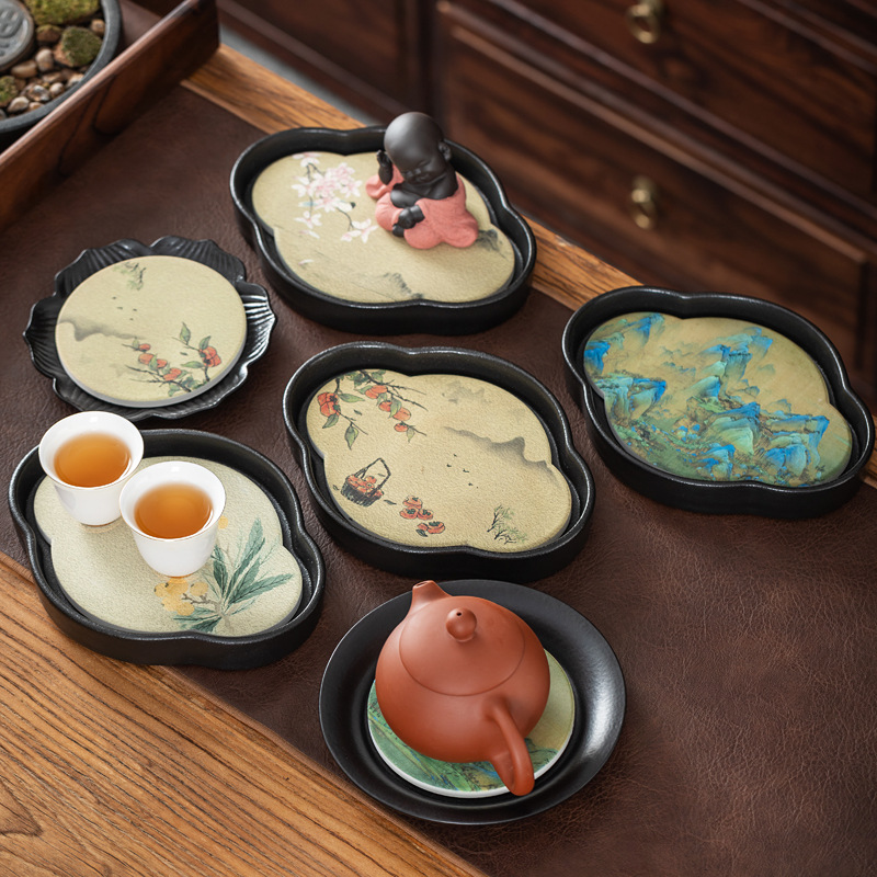 黑陶吸水壶承干泡台中式速干小型茶盘国潮功夫茶具茶托盘茶承壶垫