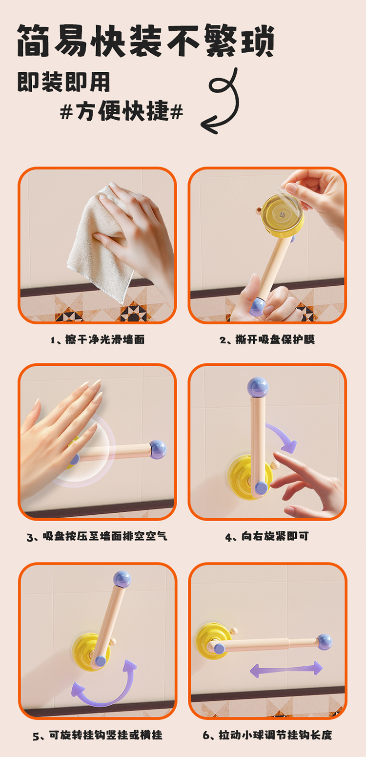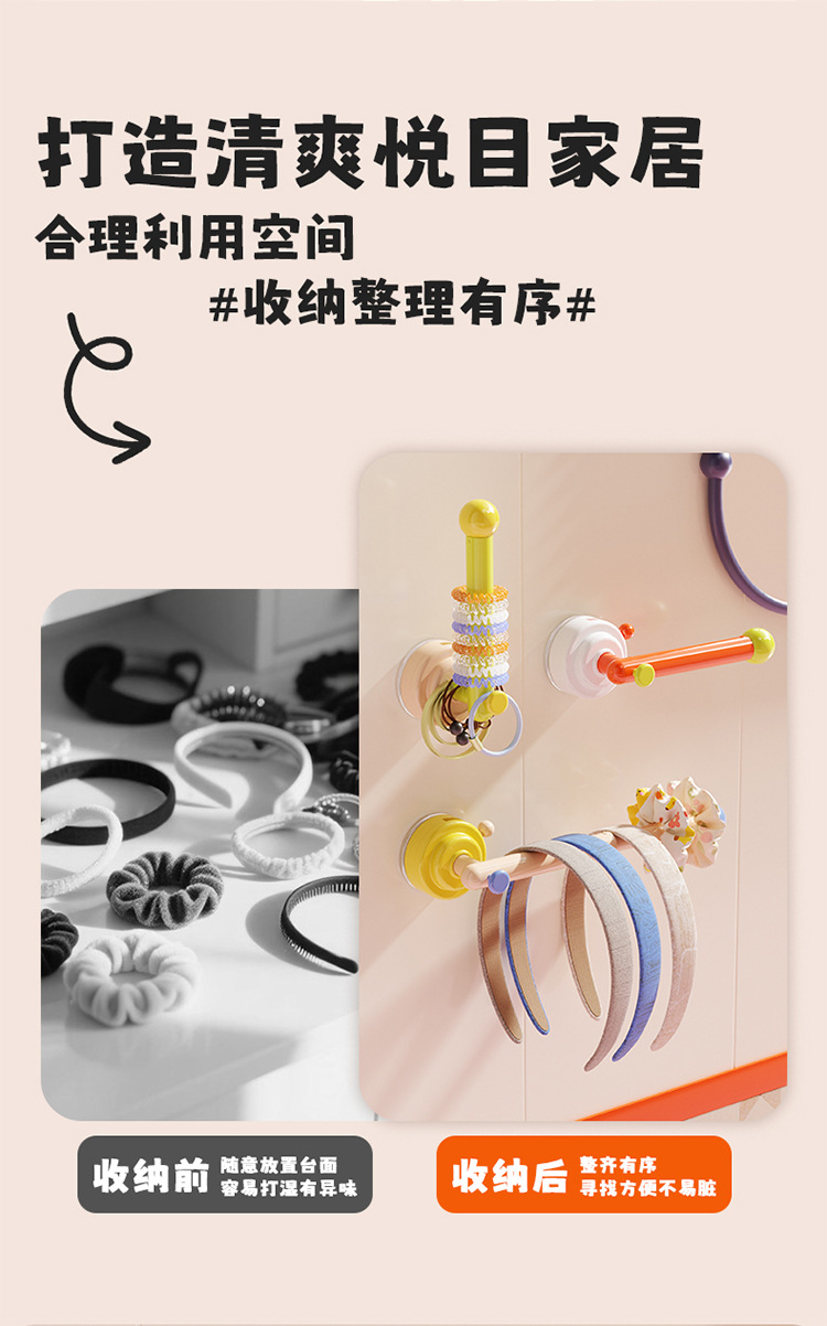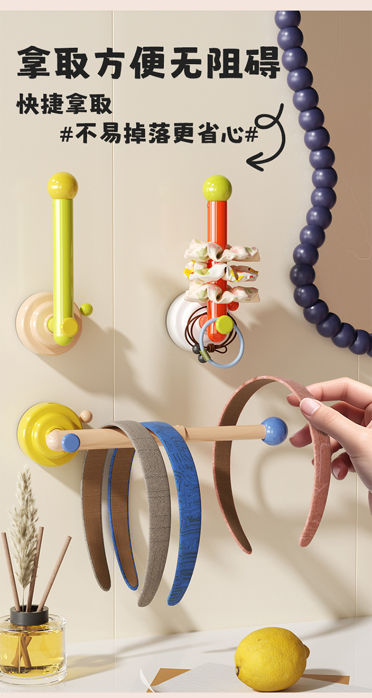 吸盘式L形挂钩免打孔发箍头绳首饰品强力厨房浴室伸缩收纳神器
