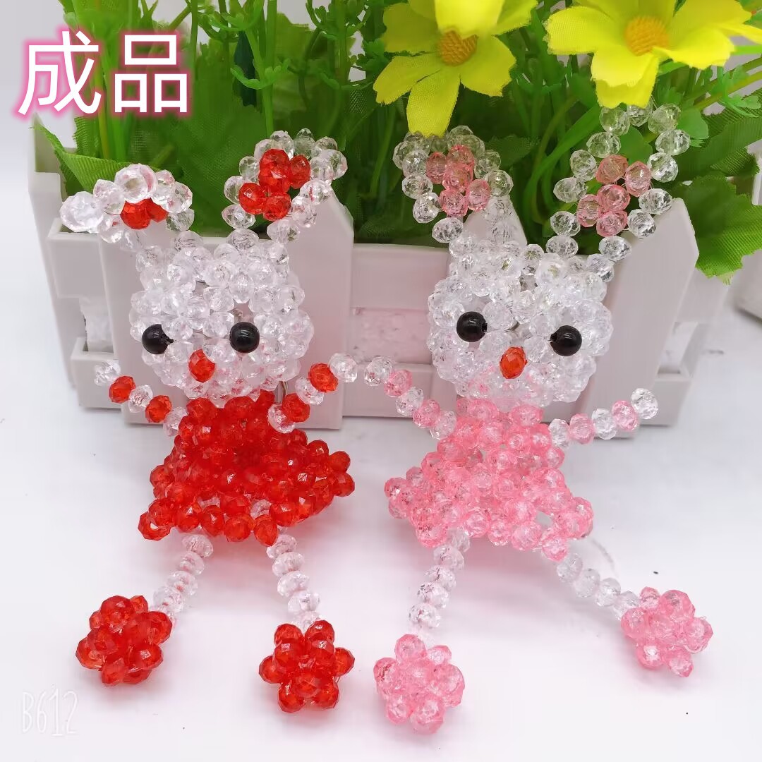 新商品ハイライト水晶珠花スカート兎米菲兎完成品純手編み子供プレゼントカバン掛け鍵