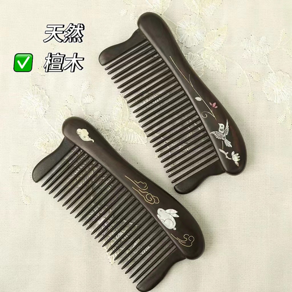 紫光檀螺钿梳非遗工艺手工镶嵌插齿梳天然紫光檀木梳子