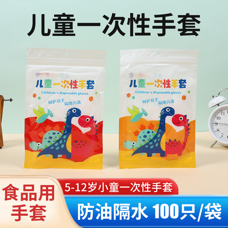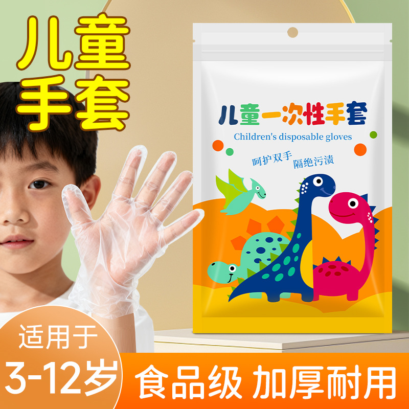 食品级一次性手套儿童专用加厚pe塑料薄膜小孩宝宝3到12岁家用装