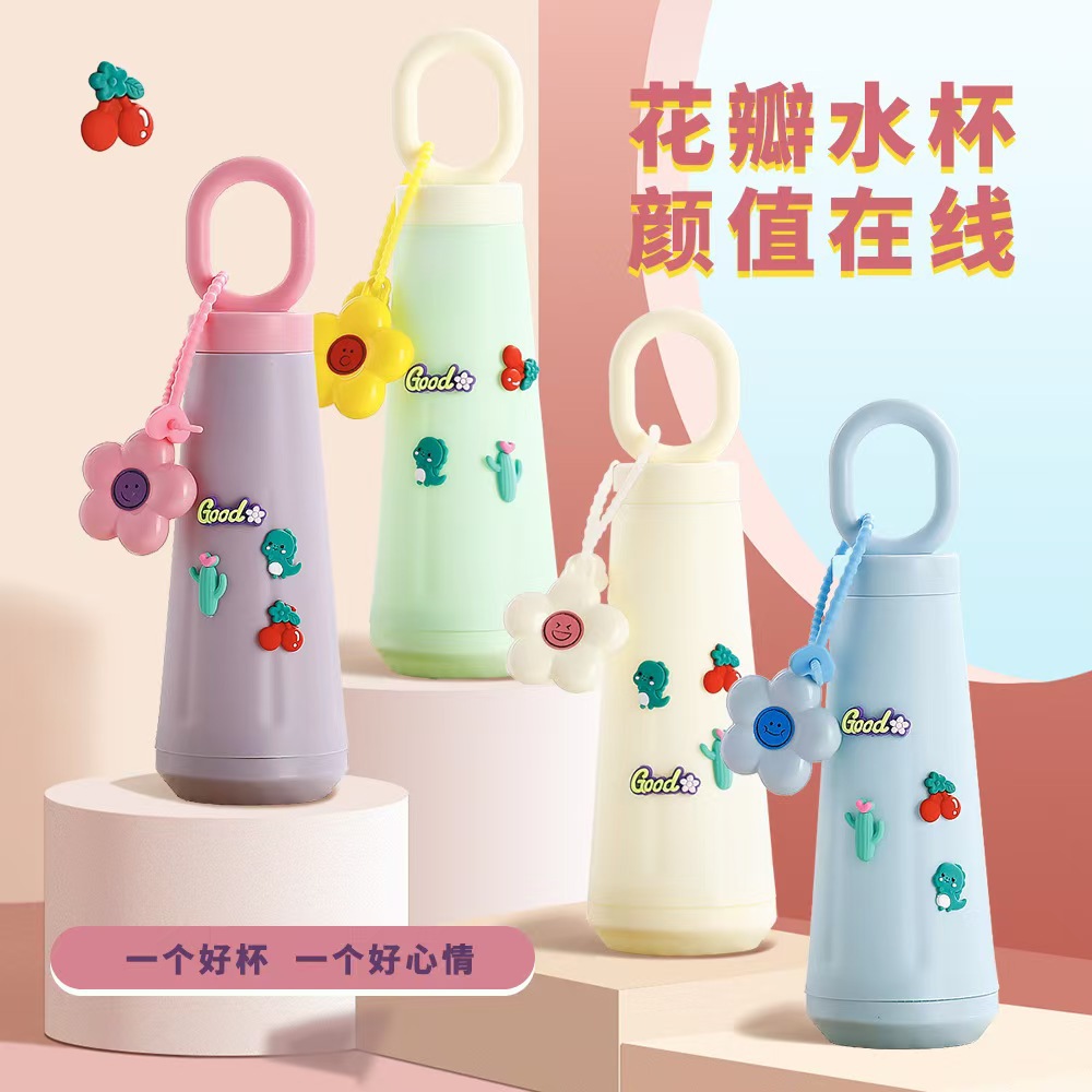 冬季新款高颜值花朵提手便携花瓣水杯可爱运动水杯玻璃水杯现货