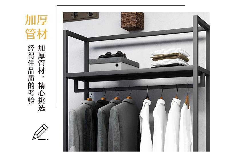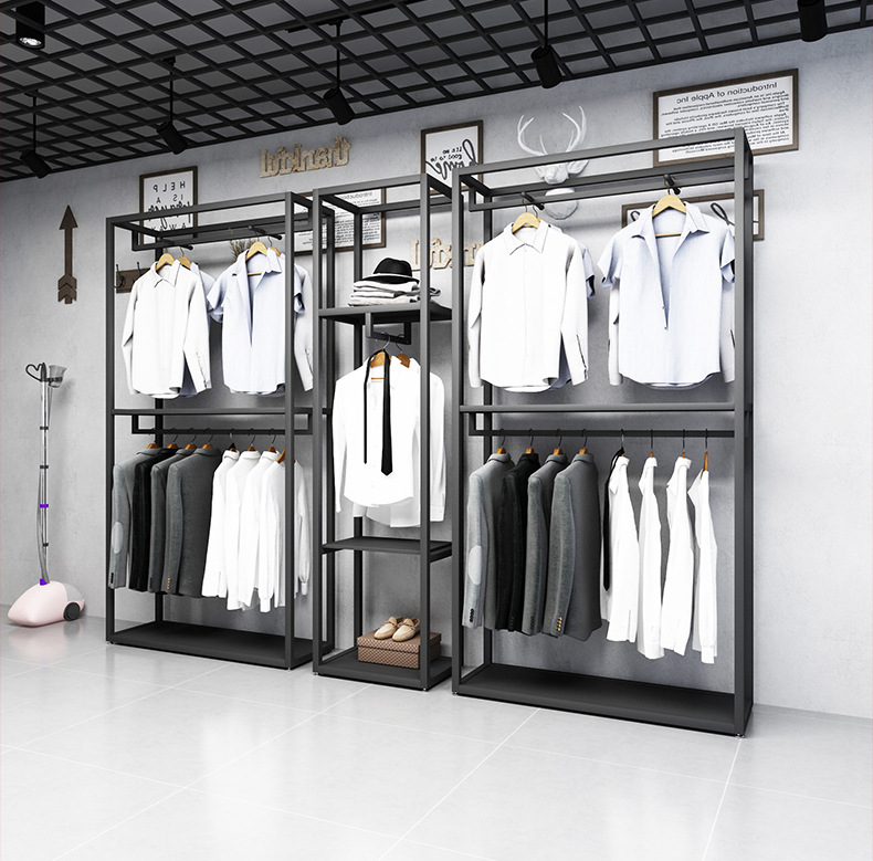 黒色洋服店展示棚紳士服店棚床置き式二重陳列ハンガー鉄芸金属バッグ棚