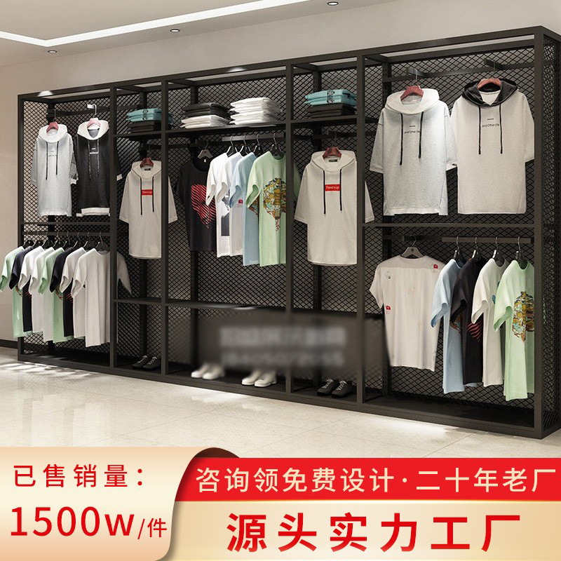 洋服店展示棚上壁壁掛け棚韓系婦人服店内装デザイン洋服店ハンガー陳列棚