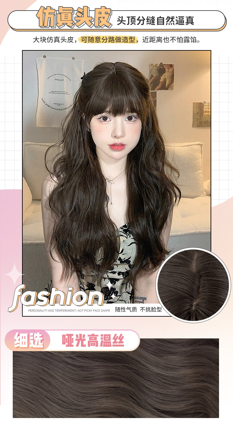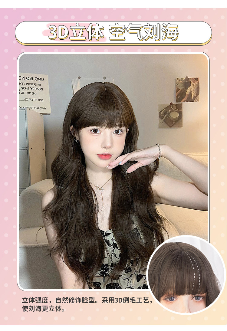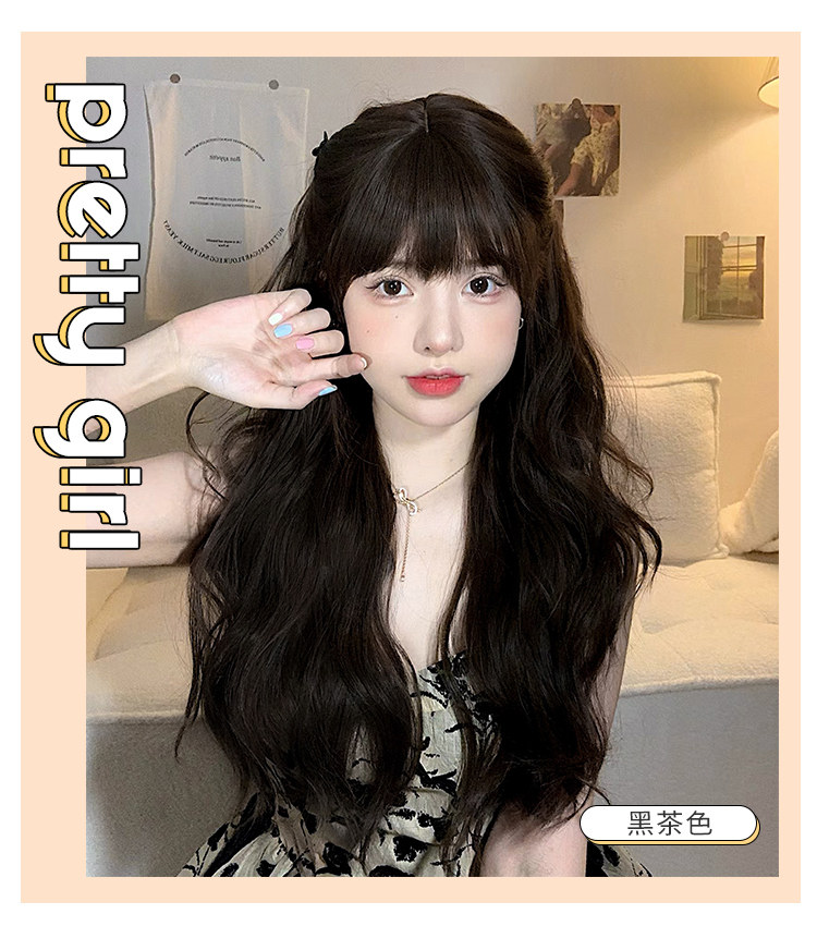 クロスボーダー卸売女性ロングヘアロングストレート日常ラウンド顔lolita日系ネット赤自然空気前髪全体カバー