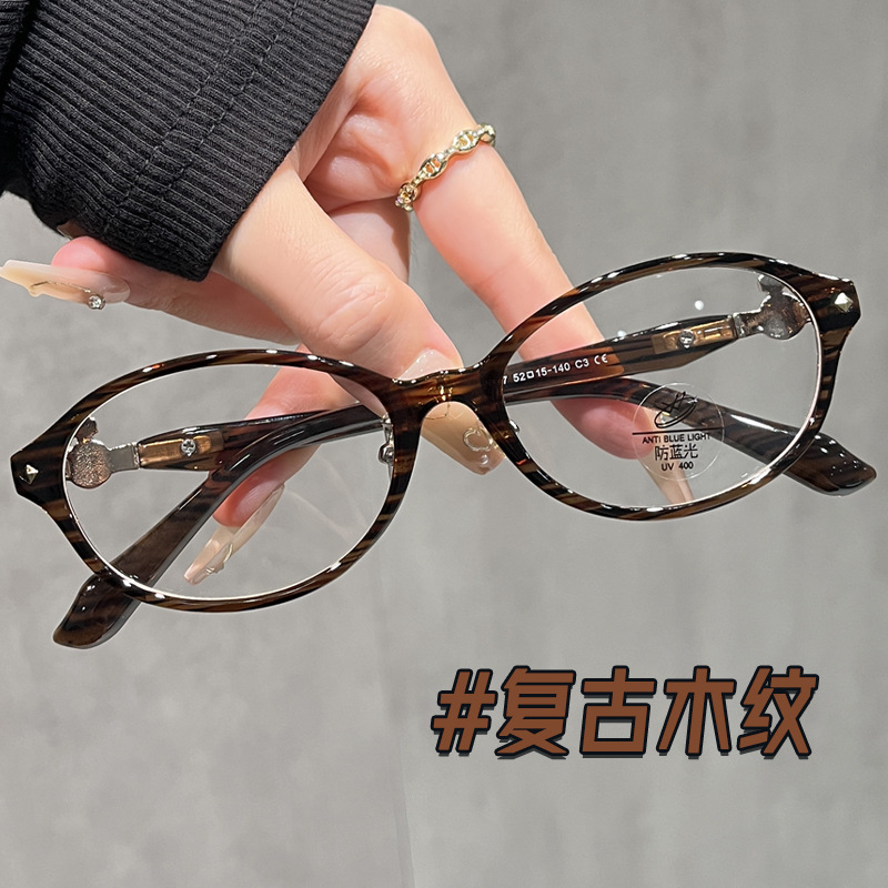 張元英の本のオタクのメガネの豹の紋様の楕円の復古の近視眼の鏡の枠は度数を配合して青い光の小さい顔の女性を防ぐことができます。