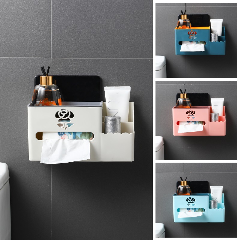 多機能ティッシュボックスデスクトップ穴なし壁掛け式クリエイティブティッシュボックストイレリビングルーム2 in 1ティッシュボックス
