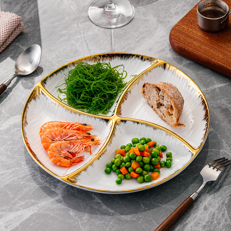 镀金陶瓷三格四格盘子西餐海鲜拼盘卤拼炸鸡小吃盘轻奢餐具北欧风