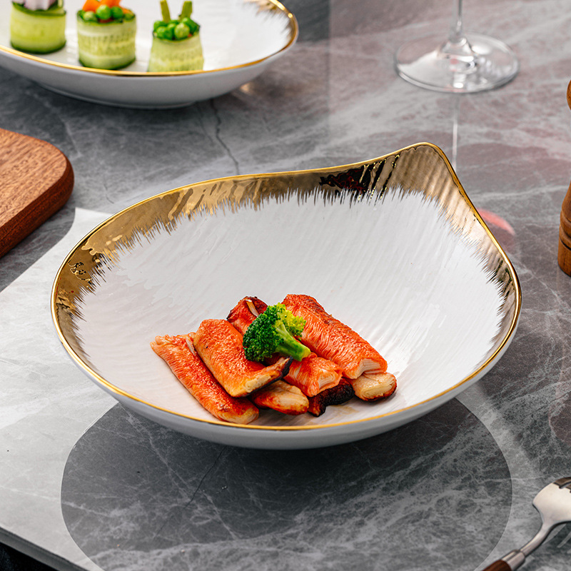 镀金沙拉碗北欧风异形餐具轻奢凉菜碗海鲜意面碗西餐碗甜品碗
