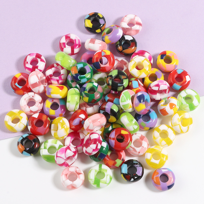 14mm亚克力果冻碎花彩色扁圆车轮珠串珠 diy手机链头绳车挂小饰品