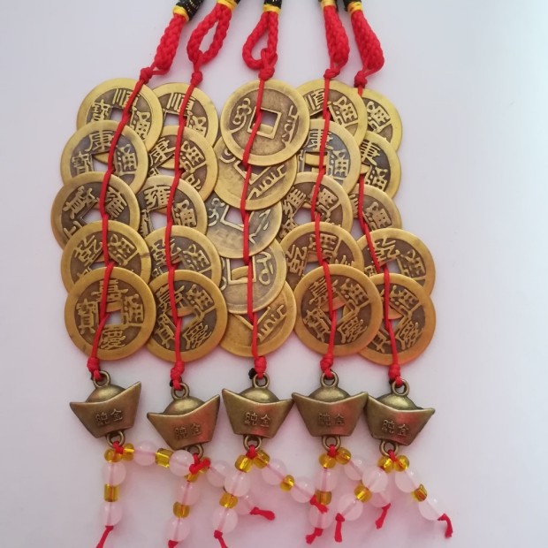ペンダント工場製の元宝六帝銭(純銅製)、五帝銭(景勝地・寺院向け販促用、招財用)
